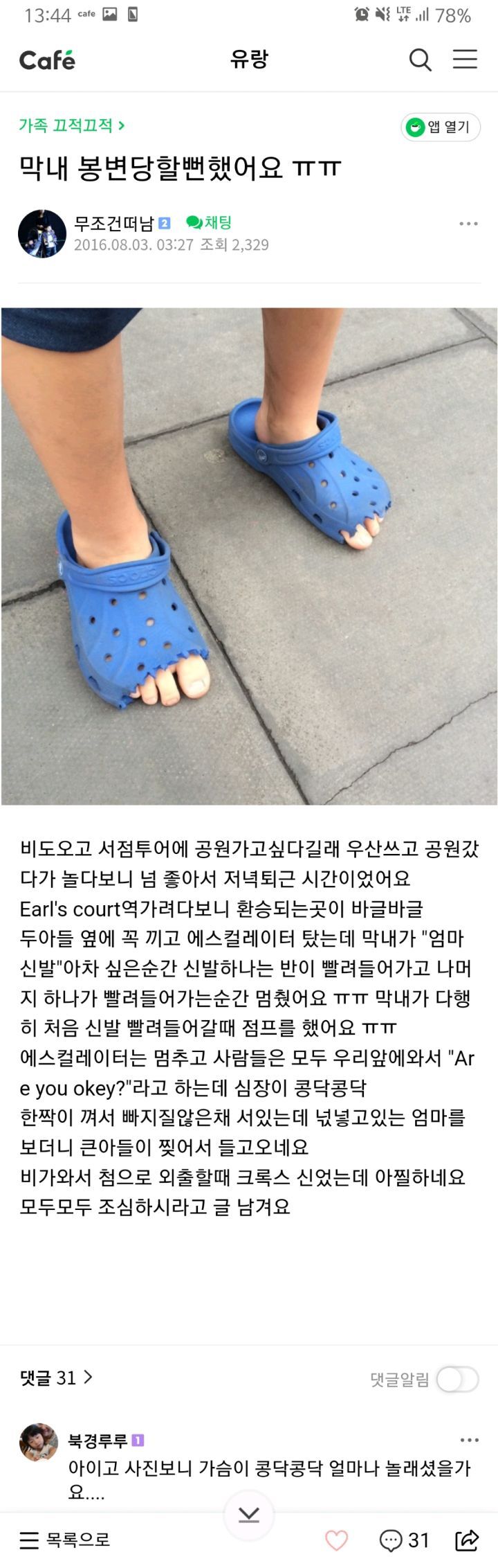 작성자쏘굴 작성시간 23.07.22 맞네...발 접질러서 인대 끊어졌을 때 크록스 신고 있었어!
