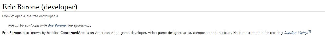 에릭 바론은 위에서 말했던 스타듀밸리 1인 개발자고,