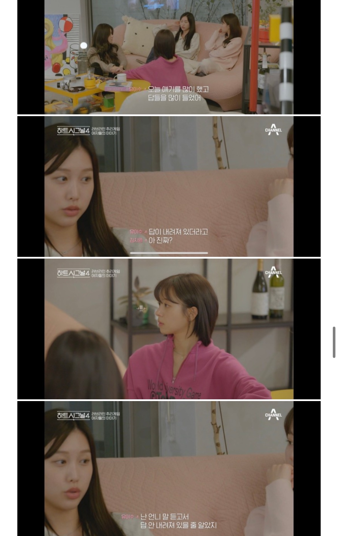 다른 여출들에게 받은 선물들 보여주면서 부담스럽단 식으로 말함)