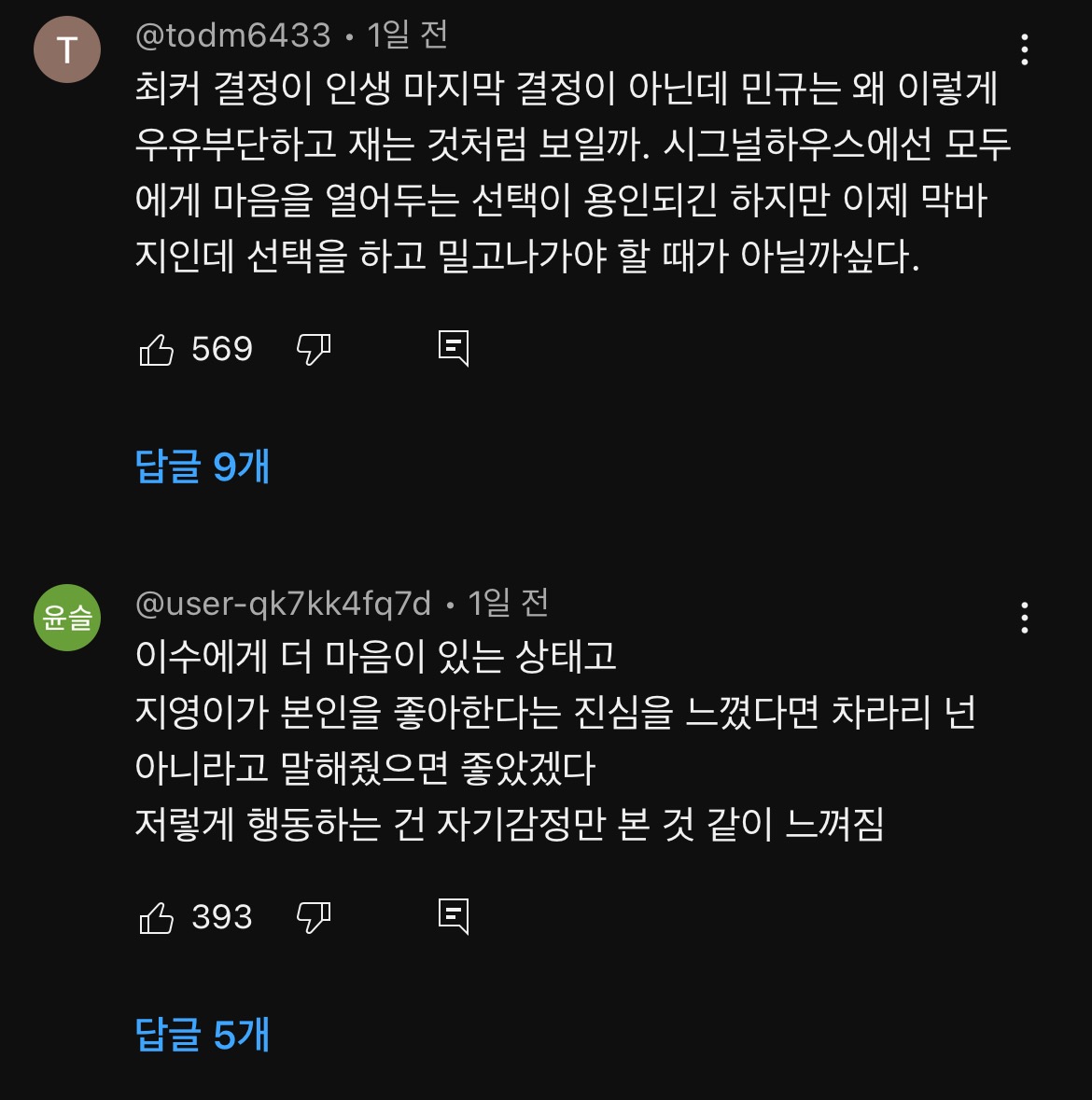 민규 빼고 모든 남출이 다 본인한테 구애하는데 자기 안 찍는 민규한테 계속계속 직진하는 거 ㄹㅇ 리스펙
