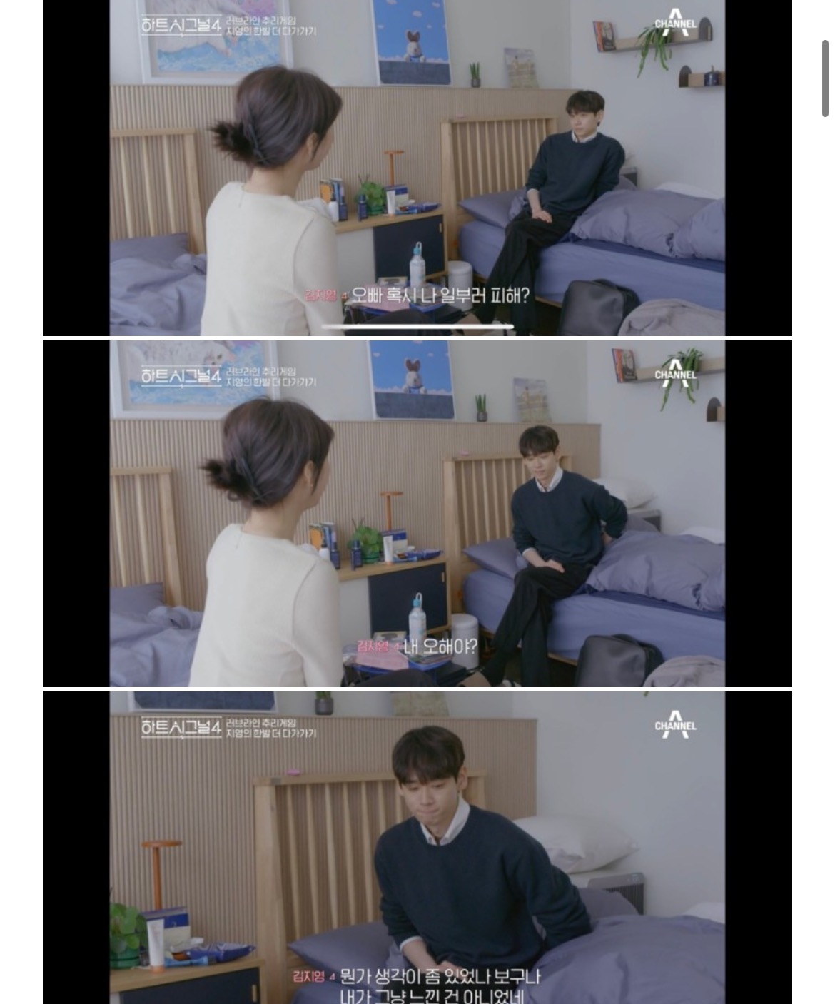 그걸 너무 느낀 지영인 상처받다가 결국 용기내서 일부러 피하는 거냐고 물어보고 민규는 부정 안함