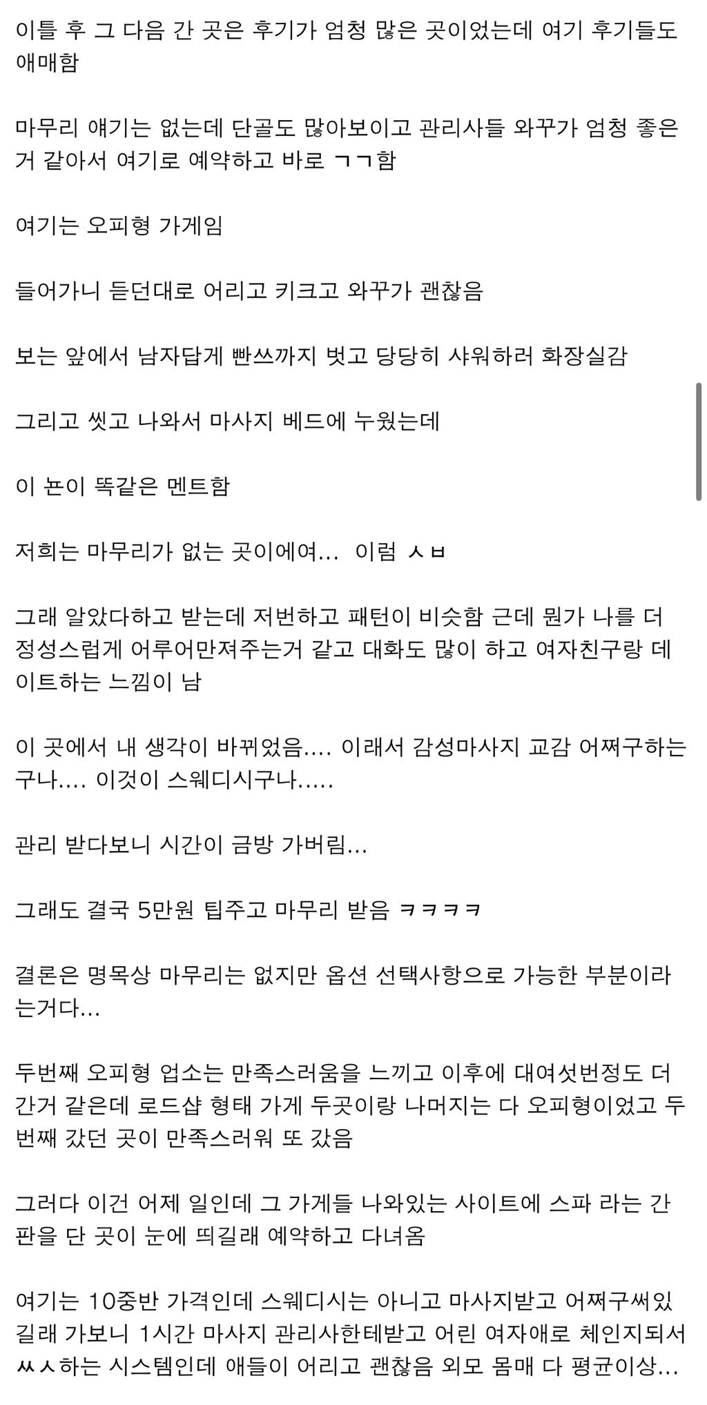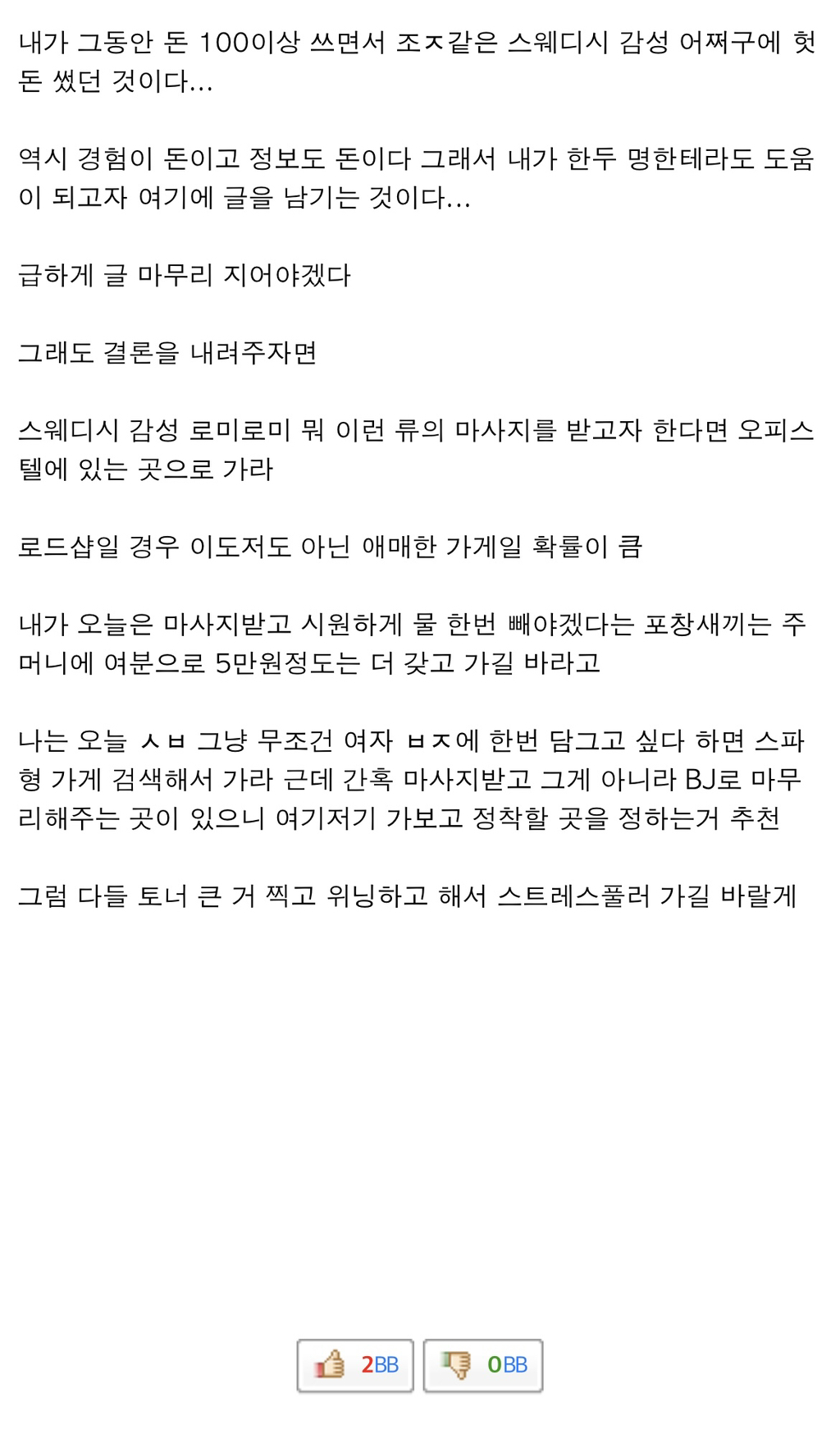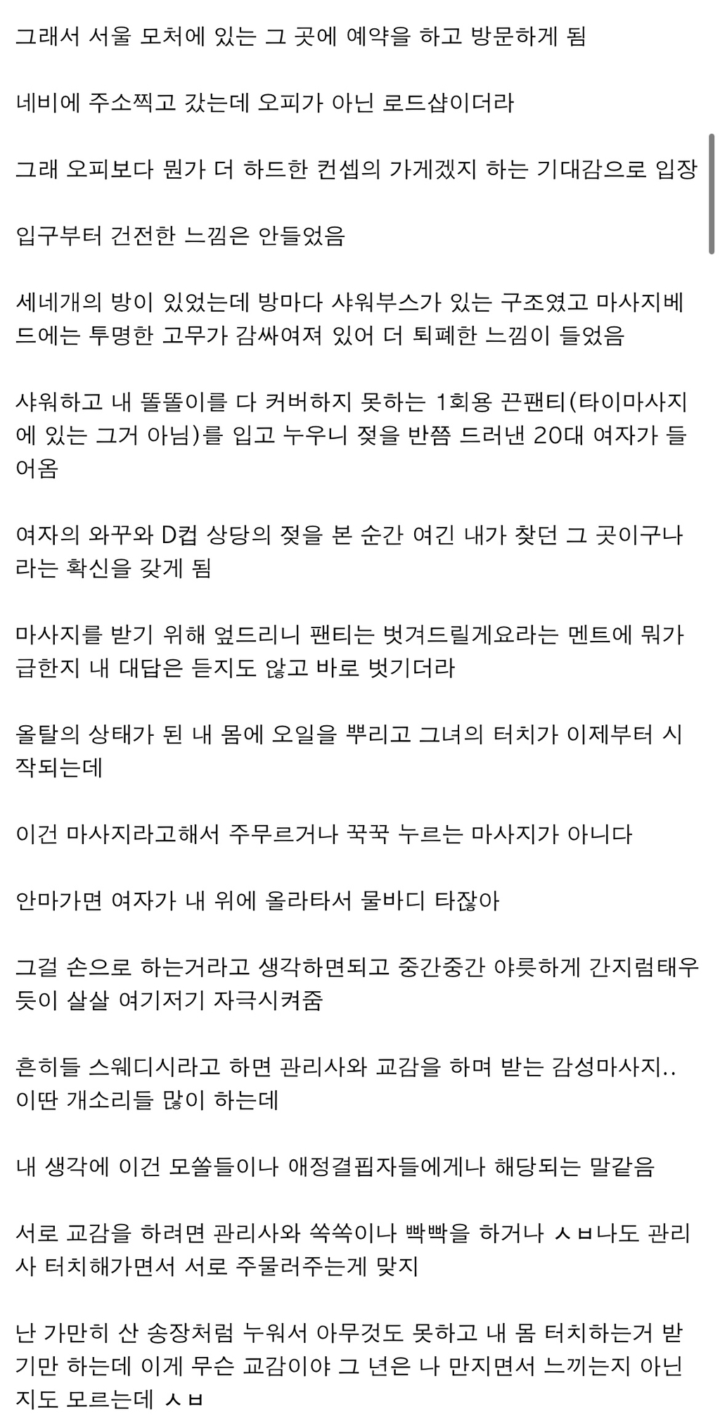 [스크랩] [기타]한녀들만 모르고 한남들은 다 아는 마사지 문화 (흔한 스웨디시 마사지 후기) 작성자얼탱|작성시간23.07.26|조회수310,567 목록 댓글 45 글자크기 작게가 글자크기 크게가 흔한 스웨디시 마사지 후기출처 : 여성시대 감놔라배놔라한국에 남자들이 가는한 건전한 마사지는 없다 다음검색 스크랩 원문 : *여성시대* 차분한 20대들의 알흠다운 공간 현재 게시글 추가 기능 열기 북마크 공유하기 신고 센터로 신고 댓글 댓글 45 댓글쓰기 답글쓰기 댓글 리스트 삭제된 댓글입니다. 답댓글 작성자동물을사랑하는여시입니다만? | 작성시간 23.07.27 22 작성자오쩌쪼키이새 | 작성시간 23.07.26 아 더러워 텍스트눈갱이네ㅆㅂ 작성자빽다방바닐라라떼 | 작성시간 23.07.26 그 여자들이 니 몸뚱아리를 만지고 흥분이 되겠냐고 ㅁㅊ 작성자닉네임이열입곱글자씩이나 | 작성시간 23.07.27 한국남자들 대다수가 성도착증 환자인데 그게 소수가 아니니까 되려 지들이 정상인줄 아는게 진짜 얼탱없음 쓸모없는 놈들 댓글 전체보기