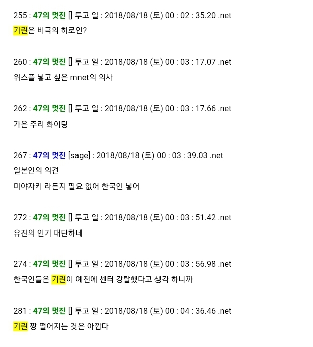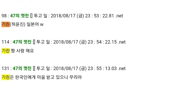 일본에서는 기린짱=허윤진 반응이 좋았음