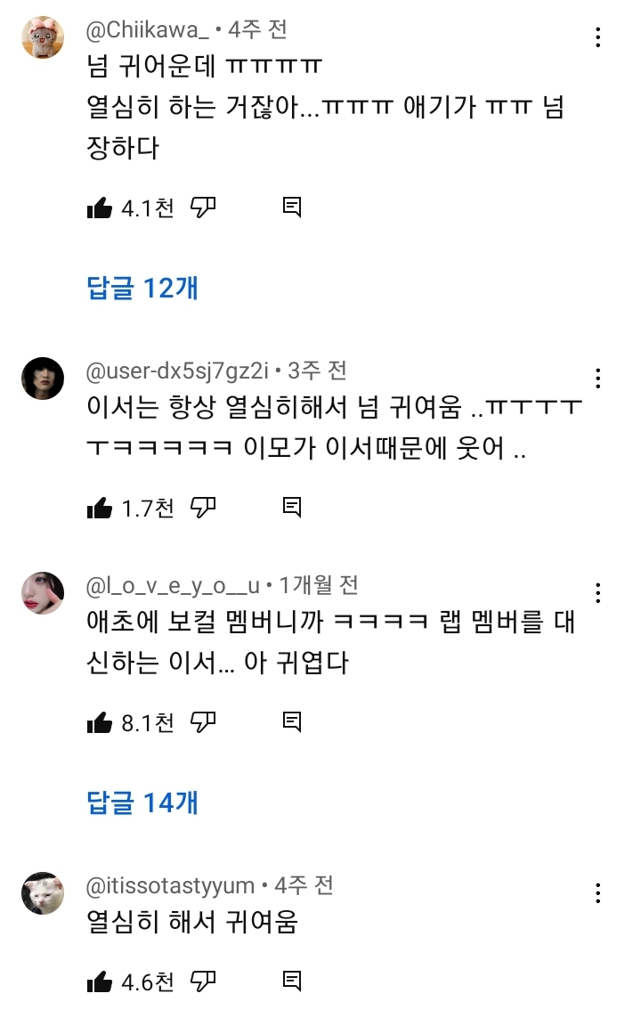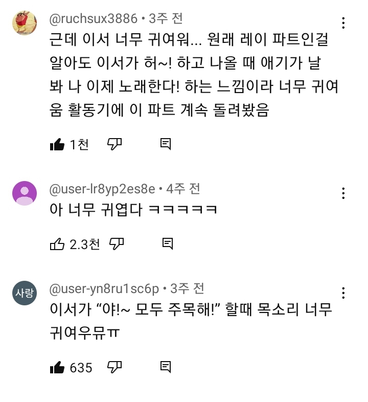 [스크랩] [흥미돋]은근 중독성있는 아이브 레이 파트 소화하는 이서 작성자본인의닉네임|작성시간23.07.27|조회수6,561 목록 댓글 26 글자크기 작게가 글자크기 크게가 출처 : https://youtu.be/iKJxJ1b_n0Y레이가 공황장애로 활동못했음대신에 이서가 대타로 부른거랩부분이고 자기파트도 아님열심히 최대한 잘해보려고 애쓰는 거임 다음검색 스크랩 원문 : *여성시대* 차분한 20대들의 알흠다운 공간 현재 게시글 추가 기능 열기 북마크 공유하기 신고 센터로 신고 댓글 댓글 26 댓글쓰기 답글쓰기 댓글 리스트 작성자파리하아마리 | 작성시간 23.07.27 아가 화이팅 ㅠㅠㅠㅠㅠㅠ귀여워ㅠㅠㅠㅠ 작성자엘지생활건강하시나요 | 작성시간 23.07.27 귀여워ㅠ 작성자다이브인투아이브 | 작성시간 23.07.27 아이고귀여워라💜💜💜💜 작성자연어회밥 | 작성시간 23.07.28 오구열심히하는 애기 작성자하와이호떡 | 작성시간 23.08.06 졸귀다 ㅋㅋㅋㅋㅋㄱㅋ 댓글 전체보기