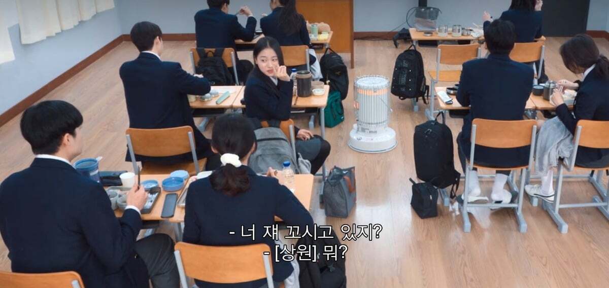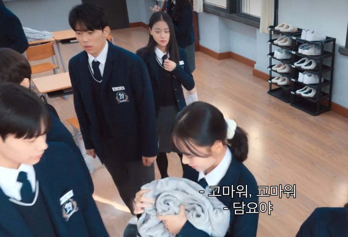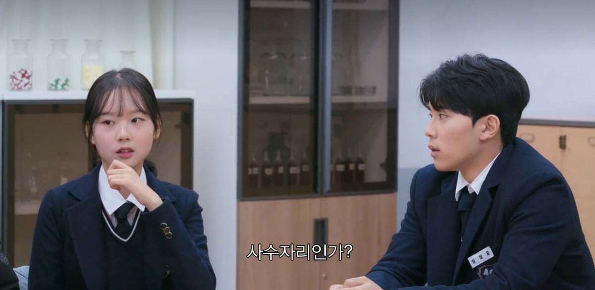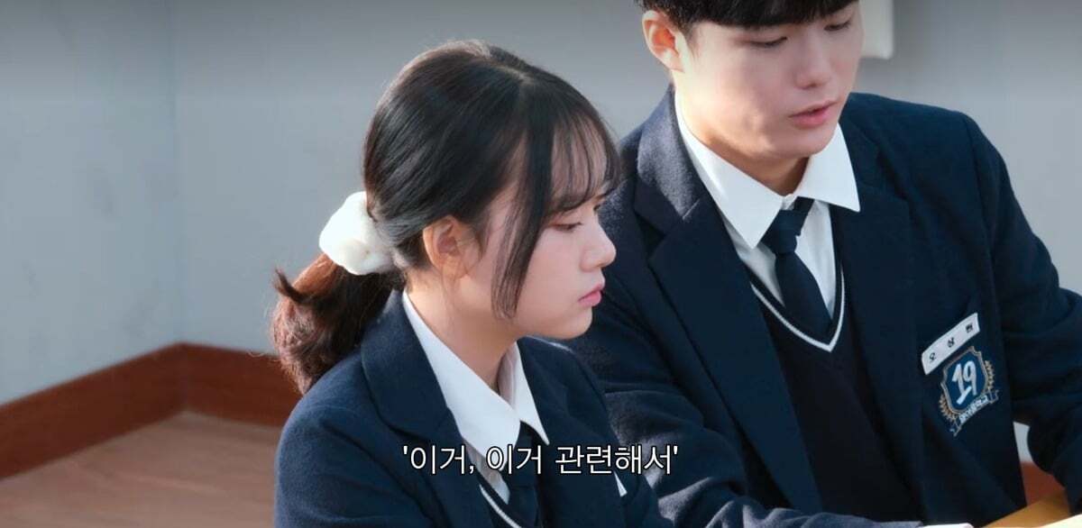 수업중 지우 짝꿍이 수업내용 설명해주는데