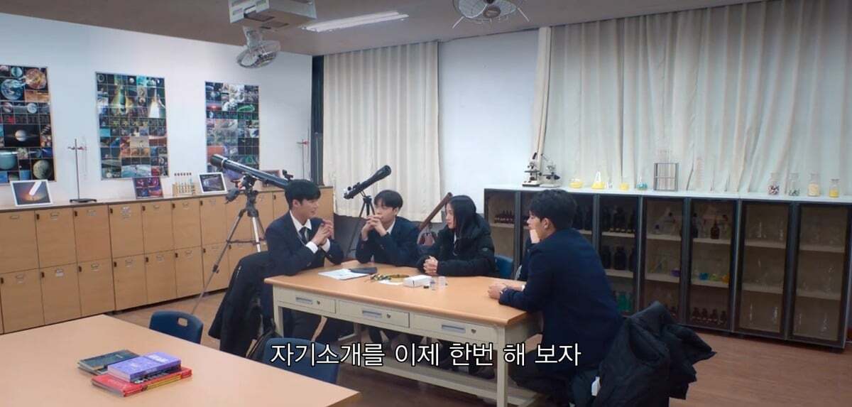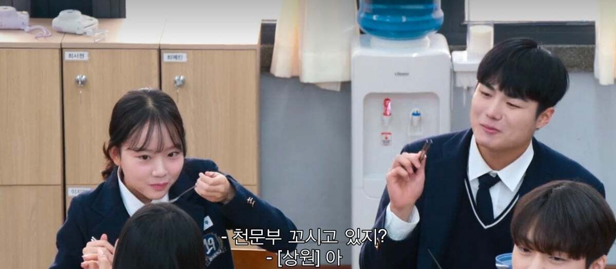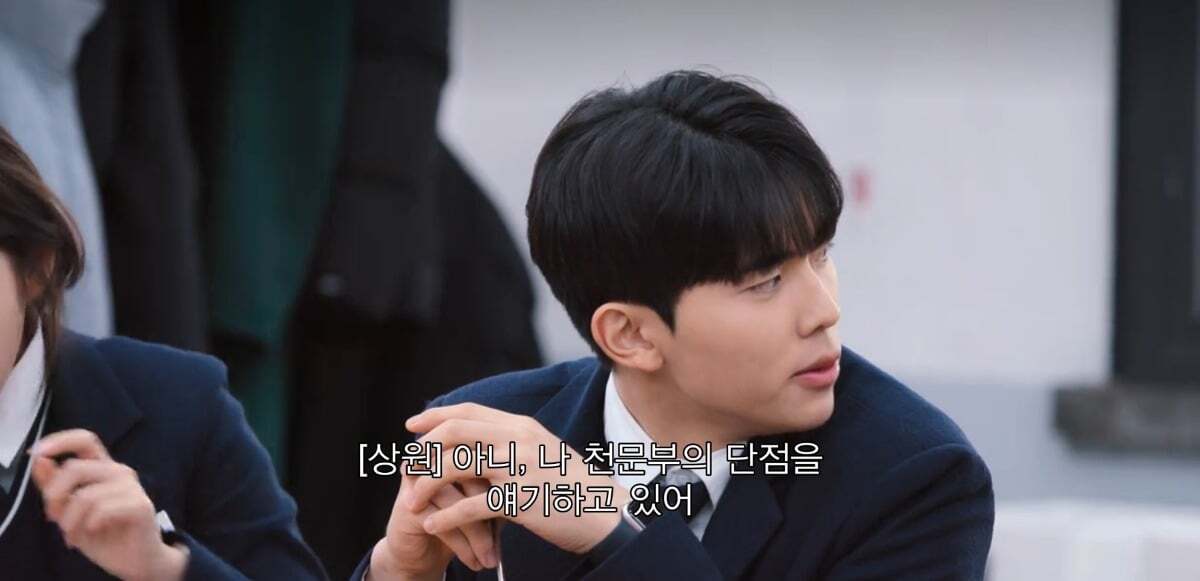 CA를 정해야하는데 지우 짝꿍 상원이가 천문부장이라 설명해주고있음