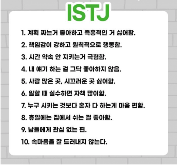 작성자ISTJ 작성시간 23.07.28 와 재밌다 공감되는 내용 많네