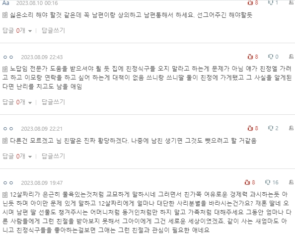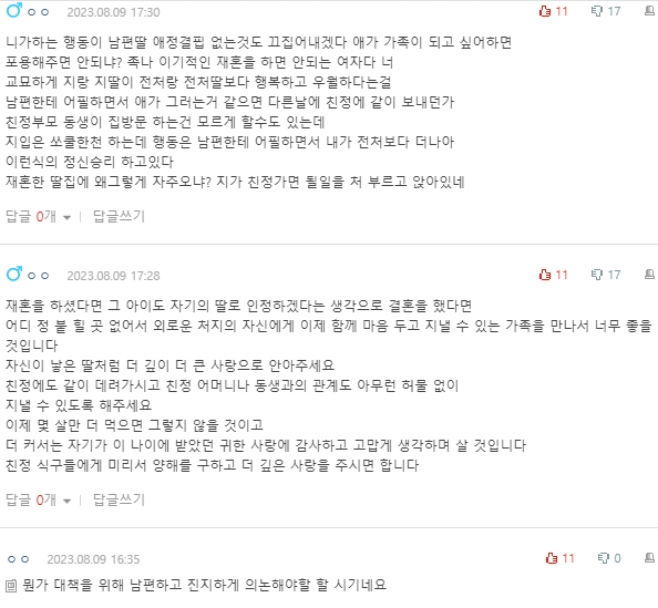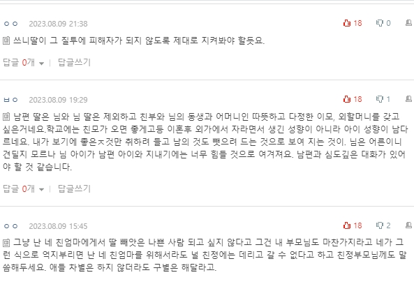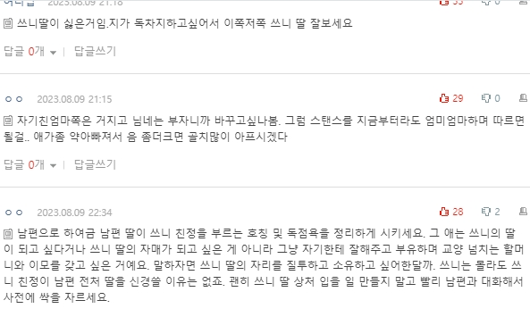 저희 가족들이 남편 딸에게 별나게 잘해준 것도 아닌데