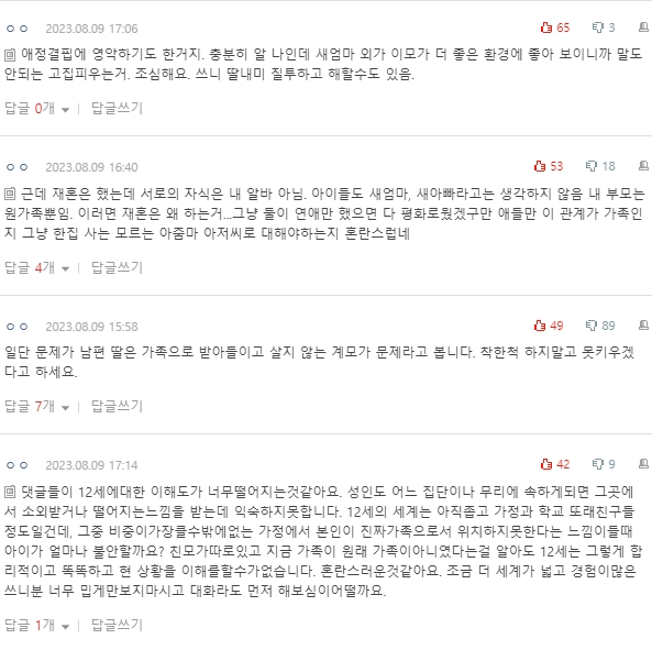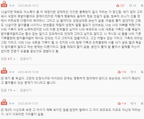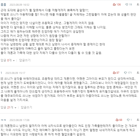 남편 딸은 12살입니다 남편 딸은 원래 친모랑 살다가
