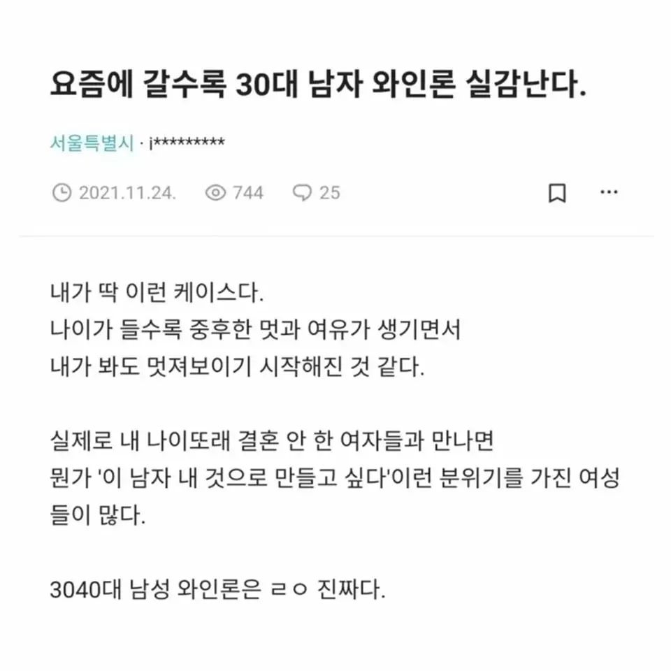 [흥미돋]요즘 갈수록 30대 남자 와인론 실감난다 작성자서한솔|작성시간23.08.12|조회수10,347 목록 댓글 26 글자크기 작게가 글자크기 크게가 출처 : https://www.instagram.com/p/Cvwx7gvy6Ow/?igshid=MzRlODBiNWFlZA==난방공사라 그런지 사람이 따숩네 거 다음검색 현재 게시글 추가 기능 열기 북마크 공유하기 신고 센터로 신고 댓글 댓글 26 댓글쓰기 답글쓰기 댓글 리스트 작성자마침내 죽을까봐 | 작성시간 23.08.12 발사믹식초 ㅇㅈㄹㅋㅋㅋㅋㅋㅋㅋㅋ 작성자I like me | 작성시간 23.08.12 쉬었다 쉬었어... 작성자빙수먹고싳내 | 작성시간 23.08.12 쉰내오짐 밖에다 내다버려야지.... 작성자unholy | 작성시간 23.08.12 (술꾼도시여자들 원작 작가임) 이미지 확대 작성자나는무진장행복할것이다 | 작성시간 23.08.12 썩은막걸리들 댓글 전체보기