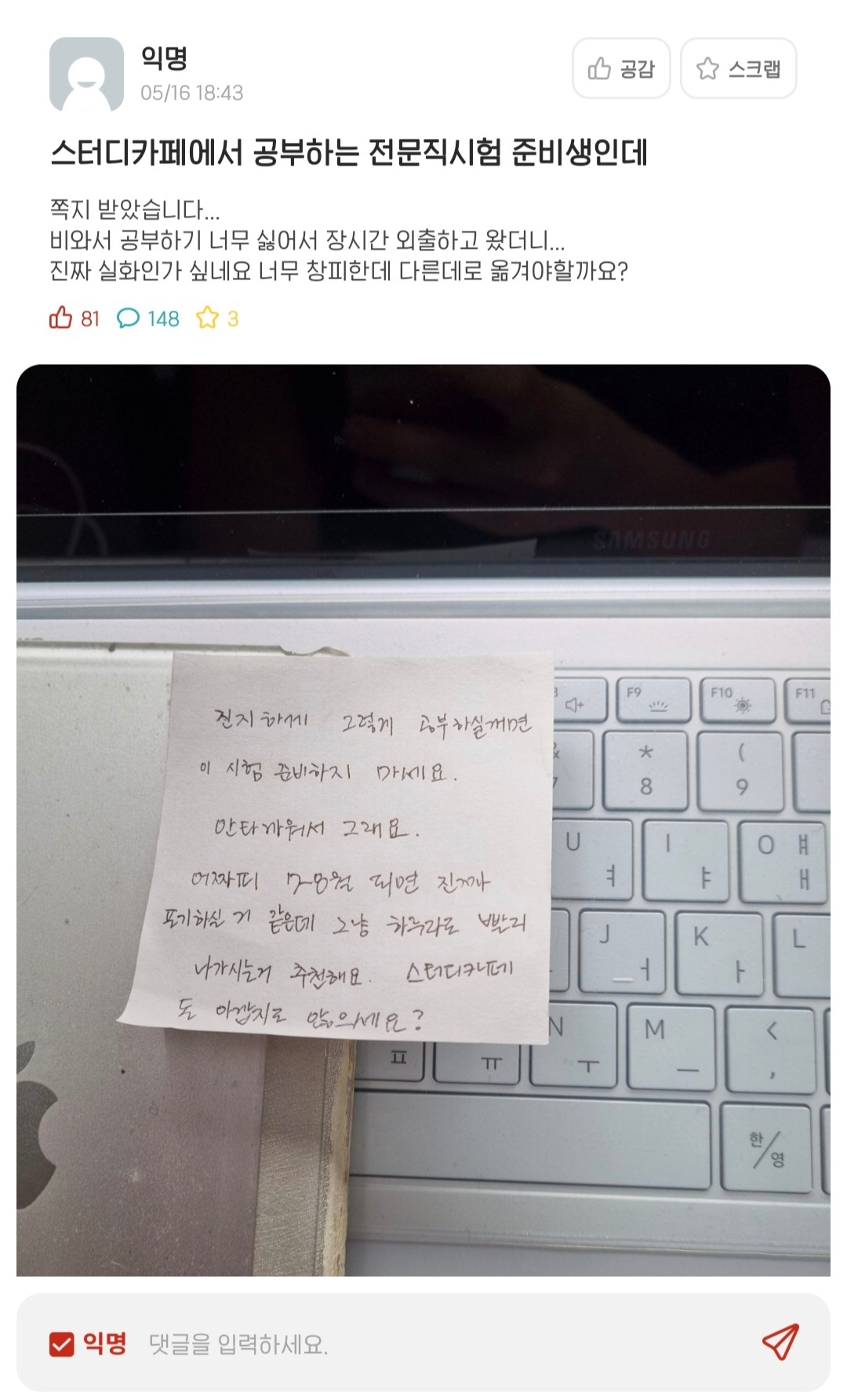 작성자홀리데이나잇 작성시간 23.08.14 지 공부나 하지 왜 남 관찰을 해.. 소름돋아 ㅋㅋㅋ