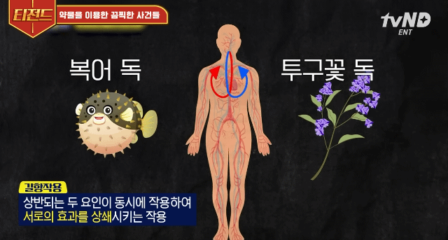 서로 방해하다가 독이 늦게 퍼지는 것이었음