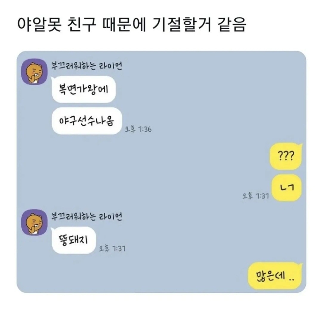 [스크랩] [배꼽의행방]야알못 친구 때문에 기절할 것 같음 작성자flflf|작성시간23.08.16|조회수7,254 목록 댓글 14 글자크기 작게가 글자크기 크게가 출처 : https://www.instagram.com/p/CnDz0H-uzw2/?igshid=YmMyMTA2M2Y=Instagram의 @k_humor_님 : "💙케이유머 팔로우하시고 웃음 받아가세요😁 @k_humor_.....#짤모음 #유@k_humor_님이 Instagram에 게시물을 공유했습니다:"💙케이유머 팔로우하시고 웃음 받아가세요😁 @k_humor_ . . . . . #짤모음 #유쾌 #개드립 #유잼". 계정을 팔로우하여 게시물 1635개를 확인해보세요.www.instagram.com 다음검색 스크랩 원문 : *여성시대* 차분한 20대들의 알흠다운 공간 현재 게시글 추가 기능 열기 북마크 공유하기 신고 센터로 신고 댓글 댓글 14 댓글쓰기 답글쓰기 댓글 리스트 작성자비를 삼키고 싶어 | 작성시간 23.08.16 ㅋㅋㅋㅋㅋㅋㅋㅋㅋㅋ많은데ㅋㅋㅋㅋㅋㅋㅋ 작성자모델임주환 | 작성시간 23.08.16 누구?? 지금 수두루루룩 지나감 작성자WOODZ(조승연) | 작성시간 23.08.16 유희관인가 뭔가 그래 느낌이 작성자떡볶이납작만두 | 작성시간 23.08.17 아너무많다 너무많아 작성자복근밥밥디라라라 | 작성시간 23.08.17 하 궁금해 그많은 돼지중에 도대체 누굴까 댓글 전체보기