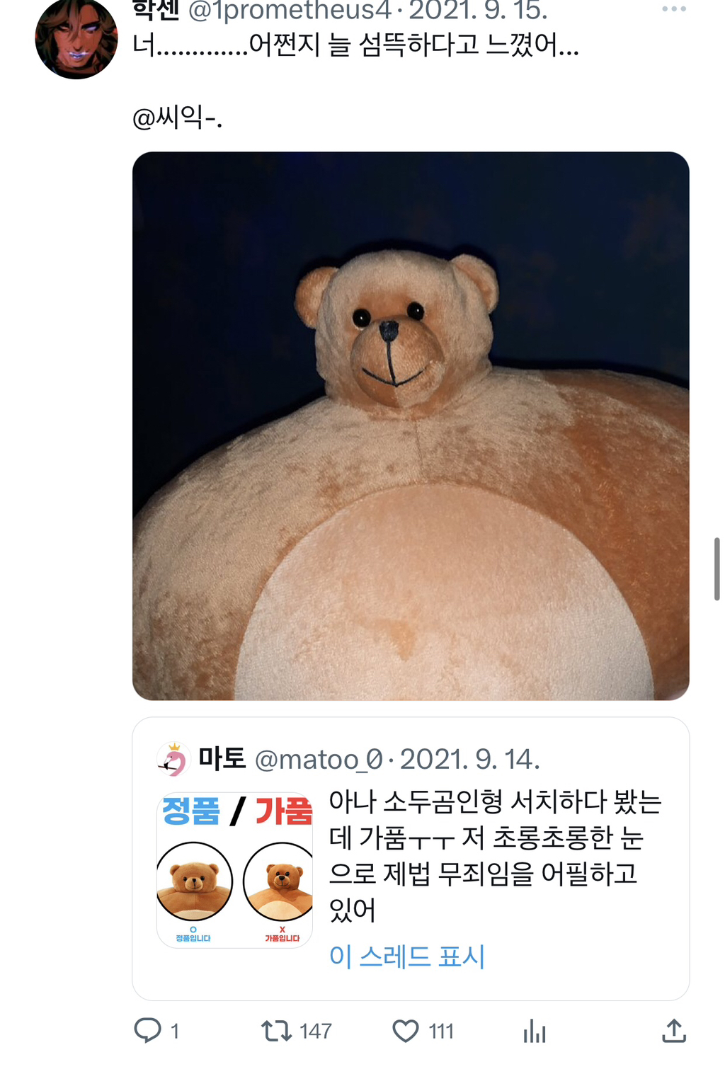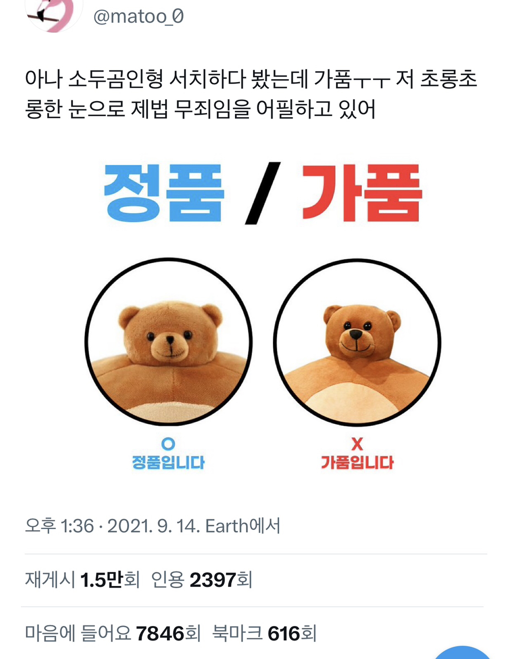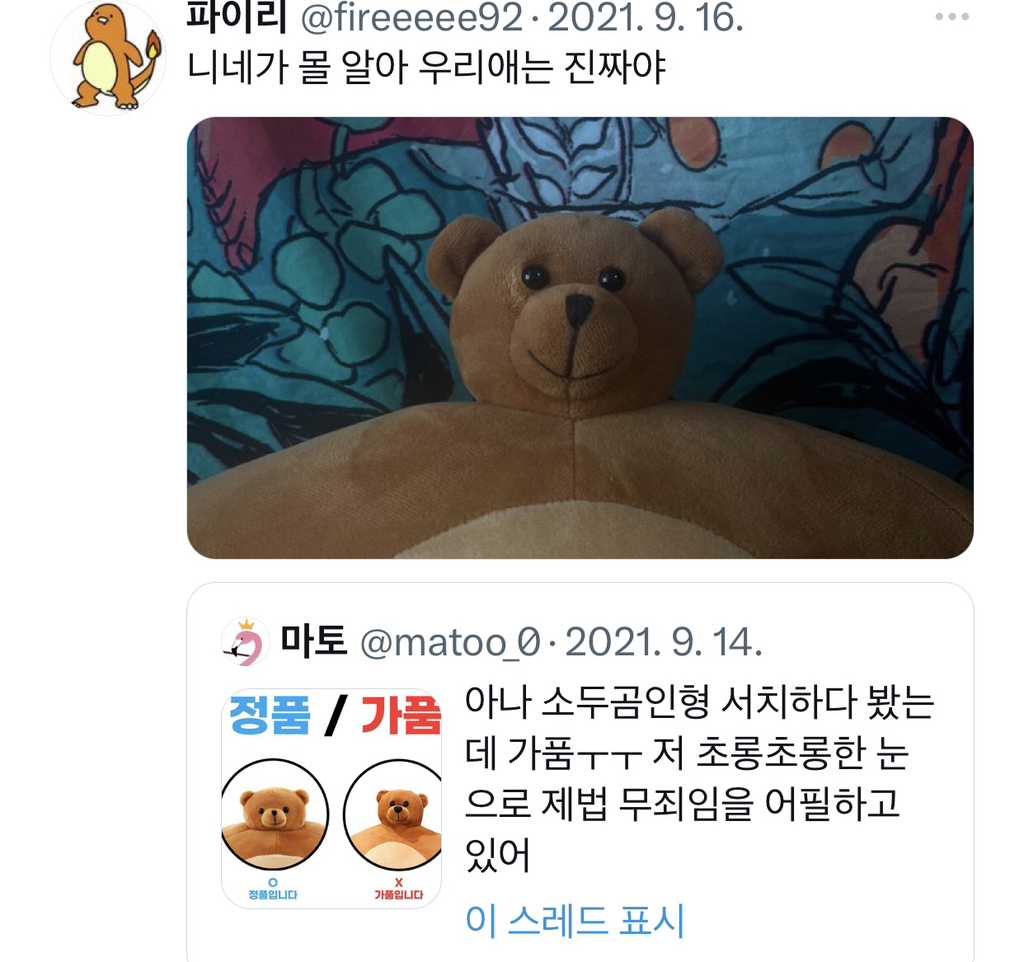 [흥미돋]소두곰인형 가품/정품 작성자다주거|작성시간23.08.20|조회수12,731 목록 댓글 26 글자크기 작게가 글자크기 크게가 출처 : 여성시대 다주거사람들 귀엽게 놀길래가져옴피해자 속출하지만 전원 사랑한다고 전해 다음검색 현재 게시글 추가 기능 열기 북마크 공유하기 신고 센터로 신고 댓글 댓글 26 댓글쓰기 답글쓰기 댓글 리스트 작성자레이몬드현식 | 작성시간 23.08.20 저런 눈망울로....!!!! 작성자마르티스 | 작성시간 23.08.20 너 뉘기야 이미지 확대 작성자unomoralez | 작성시간 23.08.20 카카오에서 샀는데...카카오도 짭팔아 ?!!!! 이미지 확대 작성자홀리홀리홀리뿡뺑삥 | 작성시간 23.08.20 판단 부탁드립미다...... 이미지 확대 답댓글 작성자홀리홀리홀리뿡뺑삥 | 작성시간 23.08.20 얘는 썬글라스도 세트로 받았는데 진정 짭인가요 ㅠㅠ 이미지 확대 댓글 전체보기