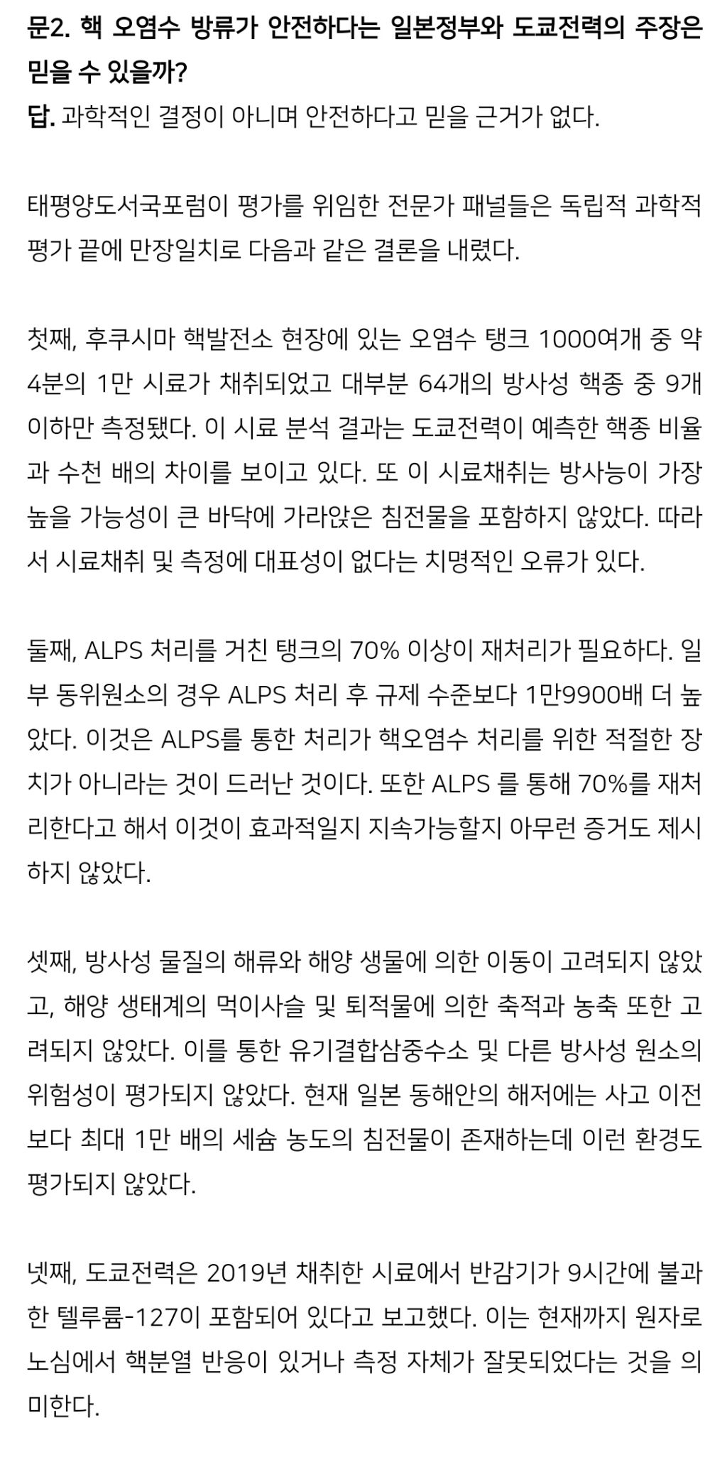 작성자아케르모이고사 작성시간 23.08.24 글고 지들이 희석한다는 그 희석물 자체도 바닷물이잖아.. 그냥 양 조금씩 서서히 풀겠다 이소린데 걍 희석해서 괜찮다는 말 자체가 개소리야