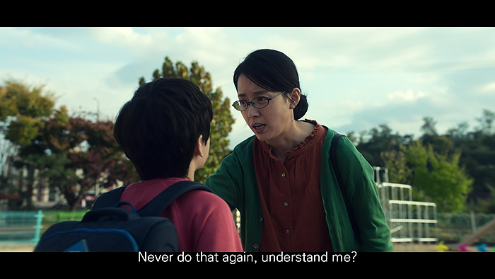 고개 숙여 선생님께 사과하는 미현(봉석이 엄마)과