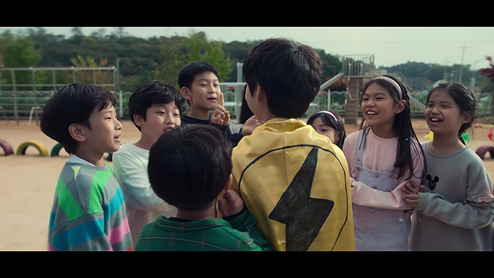그런 남자아이를 보며 열광하는 동네 아이들.