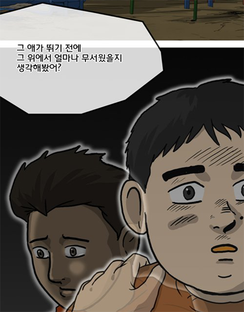 봉석이는 보란듯이 남자애가 뛰어내렸던 위치보다