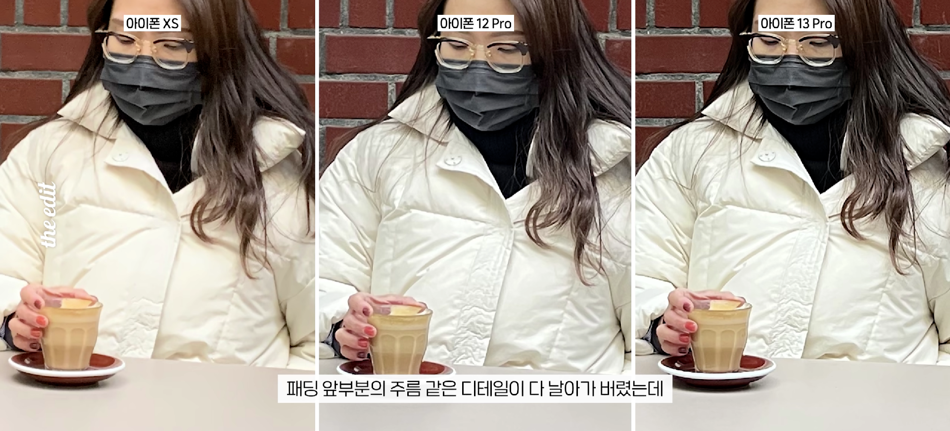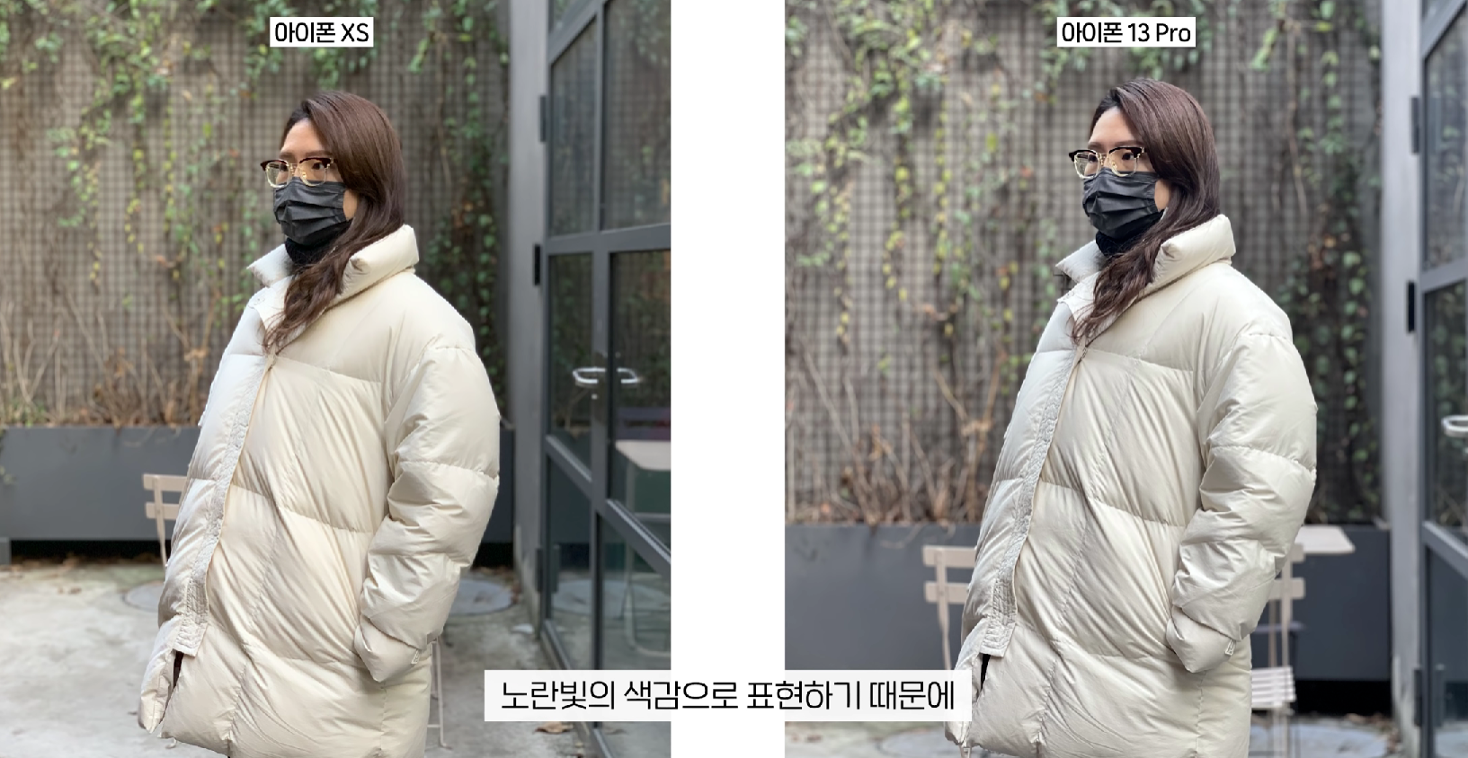 아이폰 XS , 패딩 앞 주름이 날아간다.