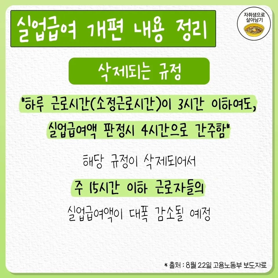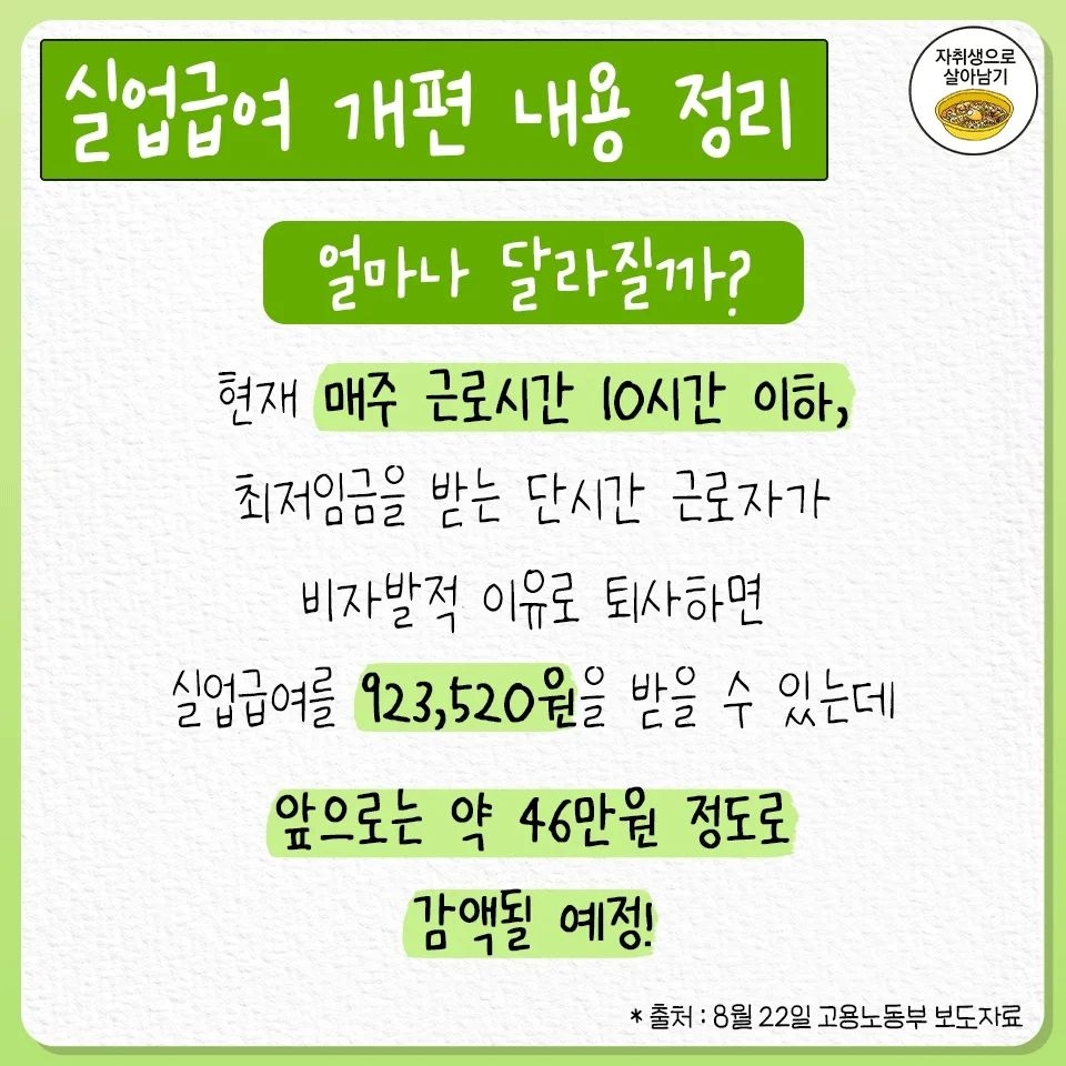[흥미돋]실업급여 개편 내용 총 정리 (11월 시행) 작성자서한솔|작성시간23.08.24|조회수5,708 목록 댓글 15 글자크기 작게가 글자크기 크게가 출처 : https://www.instagram.com/p/CwUEKvpvt-4/?igshid=MzRlODBiNWFlZA==로그인 • Instagram여기를 눌러 링크를 확인하세요www.instagram.com 다음검색 현재 게시글 추가 기능 열기 북마크 공유하기 신고 센터로 신고 댓글 댓글 15 댓글쓰기 답글쓰기 댓글 리스트 작성자조춘자 | 작성시간 23.08.24 줄이기 시작이네 작성자뿌뀪 | 작성시간 23.08.25 이런돈 긁어모아서 방류안전하다는 광고나 수억들여 만들고 있네ㅡㅡ 작성자건강댕댕 | 작성시간 23.08.25 진짜 복지 줄어드는거봐.. 작성자3OClockThings | 작성시간 23.08.25 죽이고싶다 진짜 작성자특별한개초당 | 작성시간 23.08.30 존나 조용하게 개퍈랬네 시발 댓글 전체보기