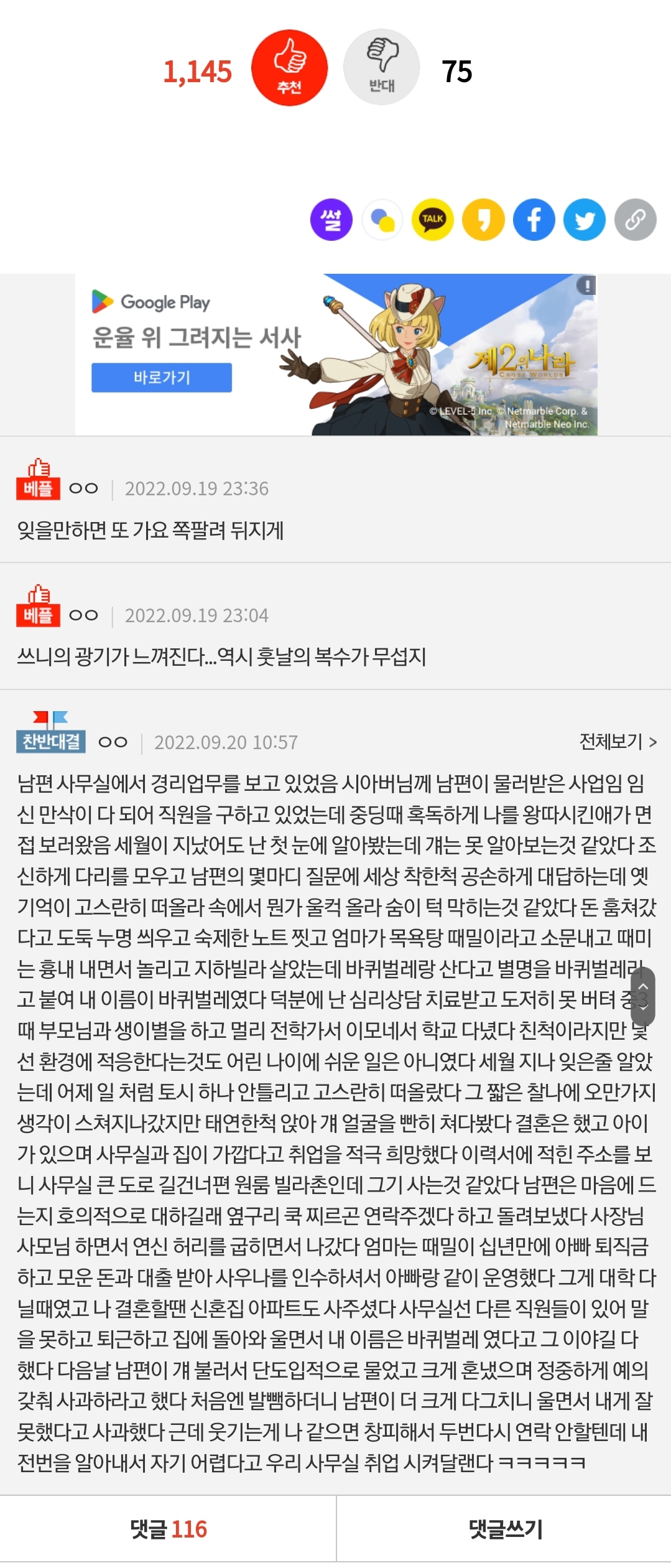 작성자안되겠다 거북선이 돼야겠다 작성시간 23.08.24 다 남편이 방패니… 그래도 속시원했음 됐다