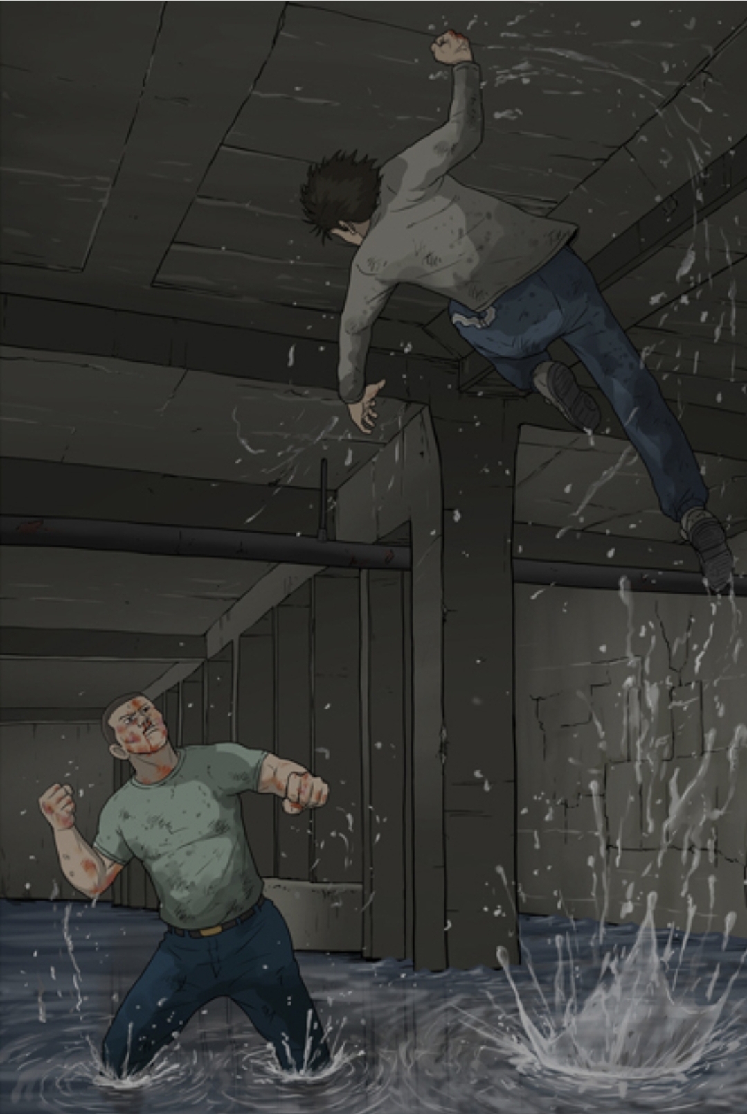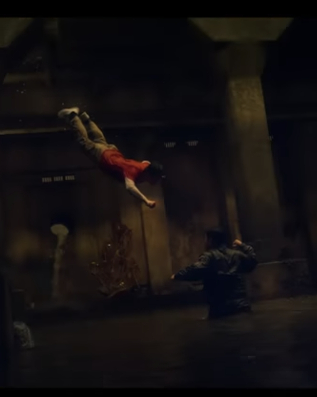 모텔에서 싸우다가 떨어지는 장주원과 깡패들