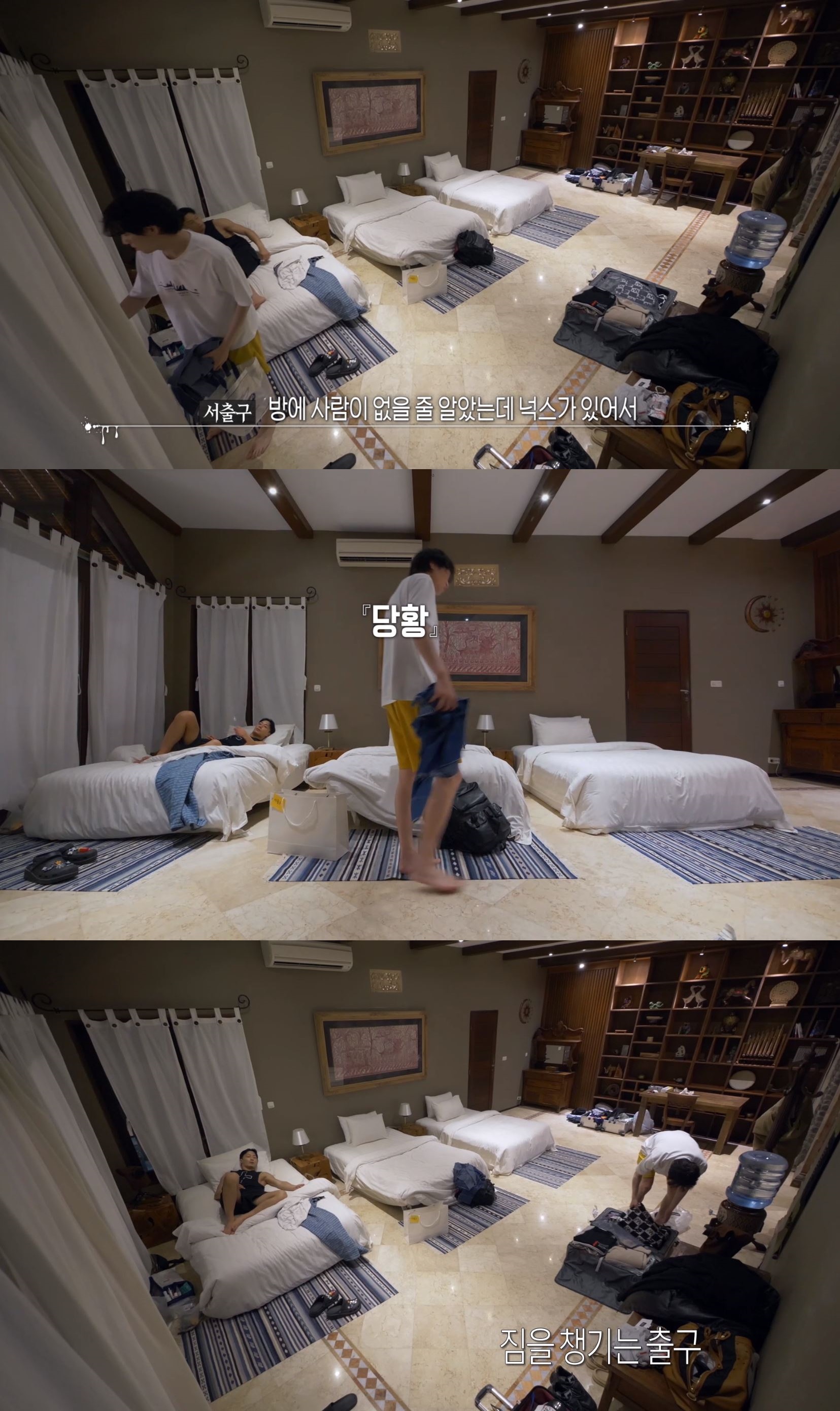 당황했지만 아무말이나 하면서 짐 챙기는 출구