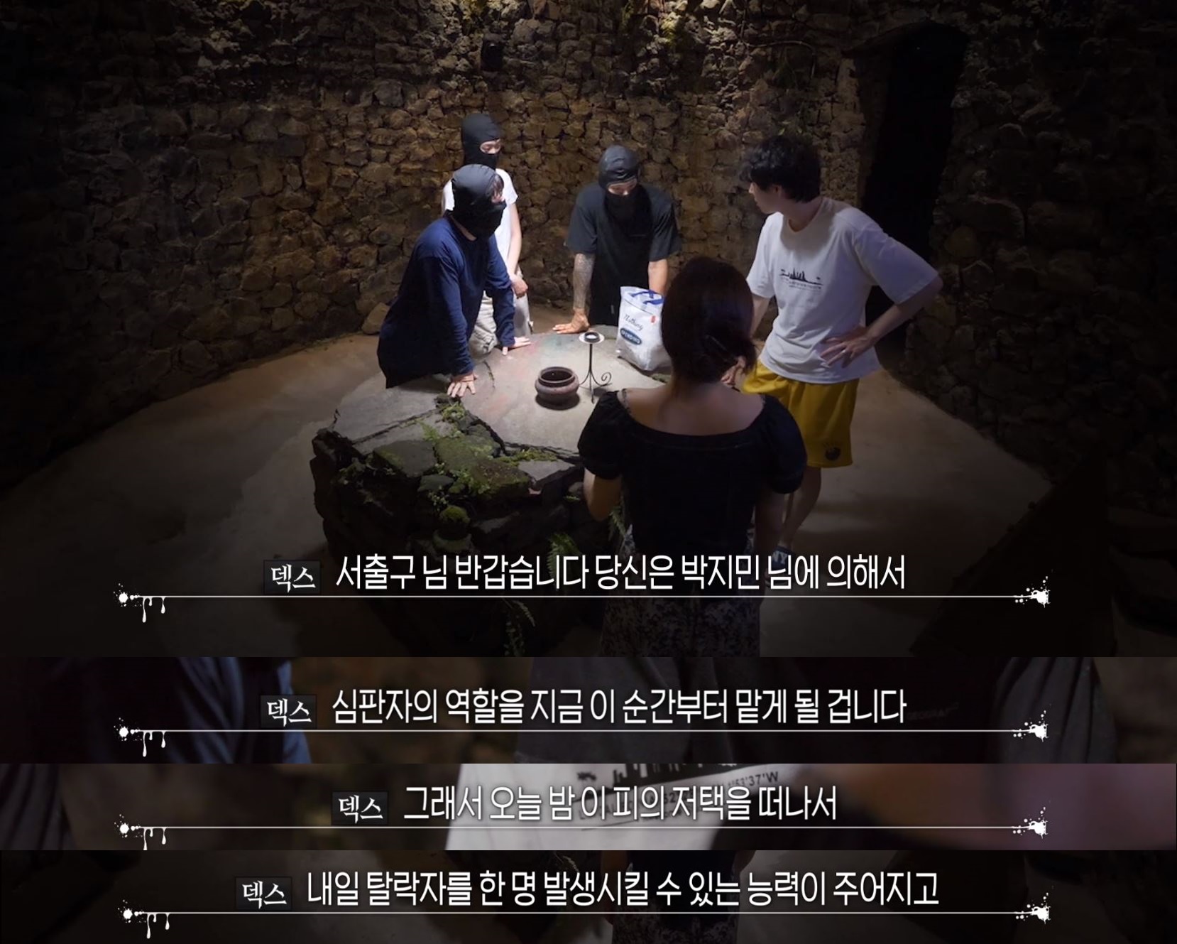 이렇게 복면쓰고 저택와서 지민과 접선