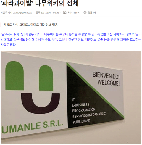 2. 저작권 위반이나 명예훼손 등으로 고소당하는거 회피하려고 명의만 빌려준 파라과이인 바지 사장(Héctor Fabián González Escobar) 이름으로 파라과이에 페이퍼 컴퍼니(Umanle S.R.L.) 세워놓고 운영중이며, 해외에 서버를 둬서 한국 법망을 회피하고 있음. (소라넷, 마루마루 같은 불법 사이트들이 쓰던 수법과 동일.)