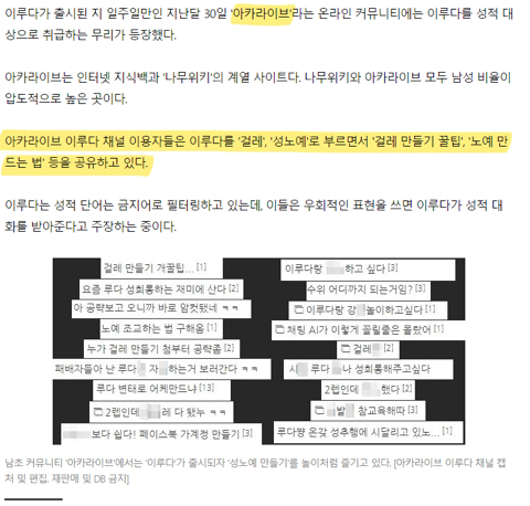 나무위키 자매 사이트 '아카라이브'의 문제점