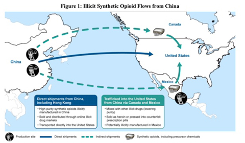 오피오이드(아편계 마약성 진통제) 계열 유통맵인데 중국이 원산지라함.