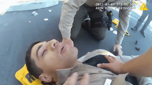 이건 마약단속중이던 보안관이 의심차량을 수색하다가 순간적으로 공기중에 퍼진 펜타닐에 노출되서 과다복용으로 바로 쓰러지는 장면.