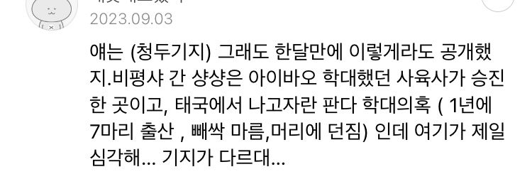 작성자현재에게미래가 작성시간 23.09.04 사육사들 마음 찢어지겠다.. 아휴.. 누구 욕심이냐 진짜..
