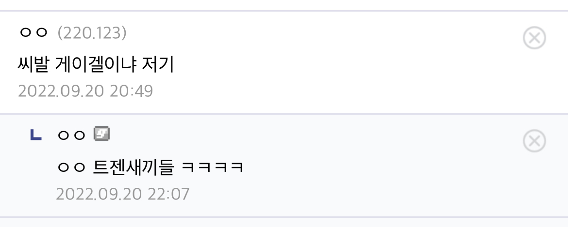게이쉑들이었어?!!!이 똥꼬충 새끼들이!!!! 언니거리길래 여잔줄 알았더니