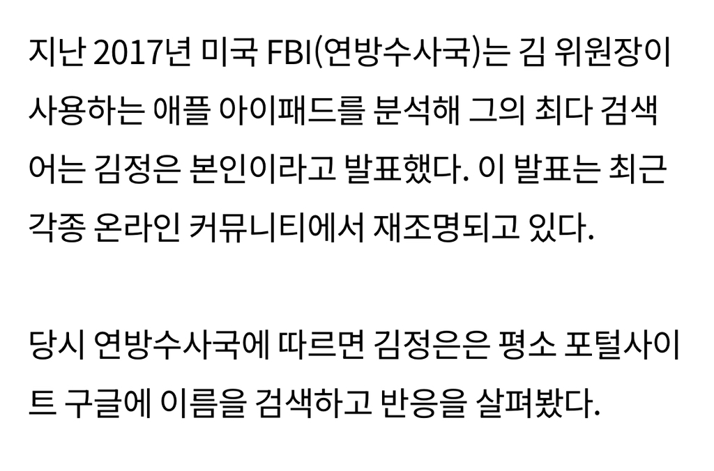 [여시뉴스데스크]김정은, 애플 '맥북·아이폰'으로 직접 자기 이름 검색해 '악플' 찾아본다 작성자htov|작성시간23.09.06|조회수15,865 목록 댓글 19 글자크기 작게가 글자크기 크게가 출처 : https://www.insight.co.kr/amp/news/240313김정은, 애플 ‘맥북·아이폰’으로 직접 자기 이름 검색해 ‘악플’ 찾아본다평소 웹서핑을 즐기는 김정은 북한 국무위원장은 본인의 이름을 즐겨 검색하는 것으로 알려졌다.www.insight.co.kr 다음검색 현재 게시글 추가 기능 열기 북마크 공유하기 신고 센터로 신고 댓글 댓글 19 댓글쓰기 답글쓰기 댓글 리스트 작성자히힣ㅎ | 작성시간 23.09.06 마 삼성써라고 작성자이밤에 아무 미련이 없어 난 | 작성시간 23.09.06 노트에 뭐 적는짤 엄청많이 봤는데 옆에 아이맥있는거 이제암ㅋㅋㅋㅋㅋㅋ 작성자Dune | 작성시간 23.09.06 지가 총살당해야 하는거 아님?? 지들 국민들은 미제쓰면 총살하면서 사형당해야한다 작성자탕비실카누도둑 | 작성시간 23.09.06 김정은도 애플계정이 있다는거네..ㅋㅋㅋㅋㅋㅋㅋㅋㅋㅋㅋㅋ 작성자연아퀸 | 작성시간 23.09.07 뚱땡아 마 댓글 전체보기