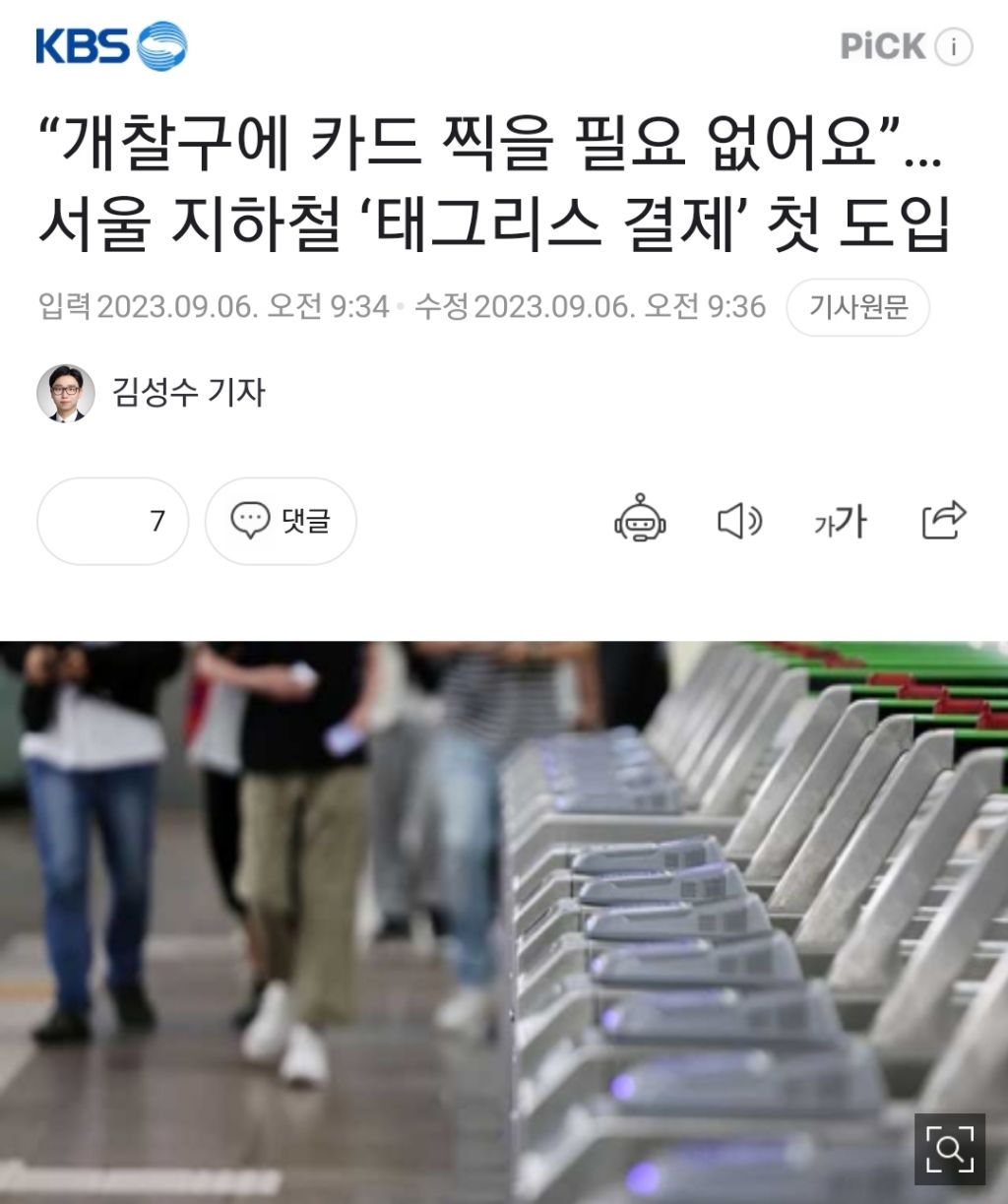 경기 지역 일부 버스에서 태그리스 결제가 시행된 적은 있지만, 지하철에서 상용화된 건 이번이 처음입니다.