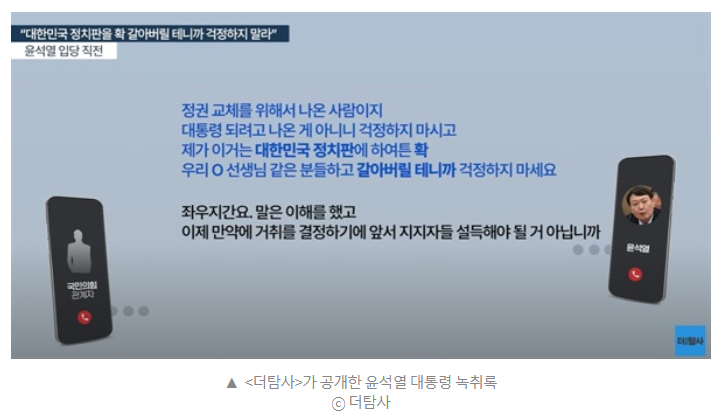 <더탐사> 공개, 입당 전부터 국힘 지도부 교체 의사... "대통령 귀찮다, 국힘 싫다" 발언도