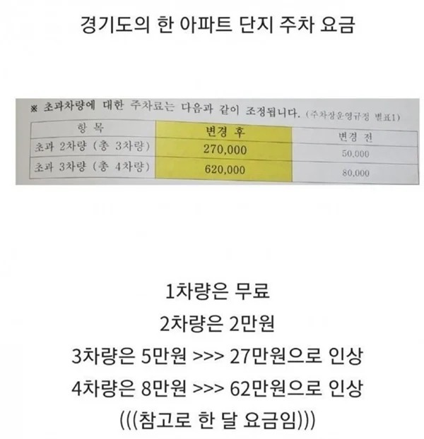 [기타]현재 논란중인 어느 아파트 주차비 작성자호준|작성시간23.09.07|조회수17,267 목록 댓글 98 글자크기 작게가 글자크기 크게가 출처 : https://m.ruliweb.com/community/board/300143/read/62794009 다음검색 현재 게시글 추가 기능 열기 북마크 공유하기 신고 센터로 신고 댓글 댓글 98 댓글쓰기 답글쓰기 댓글 리스트 작성자윈터멜론밀크티내놔 | 작성시간 23.09.07 굳ㅋㅋㅋㅋㅋㅋ 작성자짱구는 안말려 | 작성시간 23.09.07 당연함 작성자리웨잇잇 | 작성시간 23.09.07 좋다 이거 작성자꼬룍뀨륙 | 작성시간 23.09.07 제발 1톤트럭꺼지만 가능하게 해 사다리차 진짜 부셔버리고 싶어 작성자동구라미라미 | 작성시간 23.09.08 법적으로 이렇게 해 진짜 차 너무 많아... 댓글 전체보기