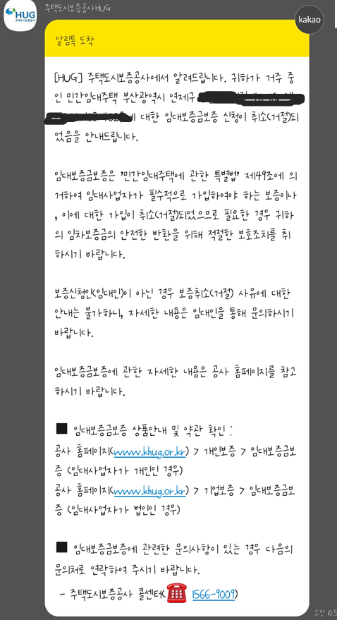 8월 30일에 허그 통해서 보증보험 취소 통보를 받자마자