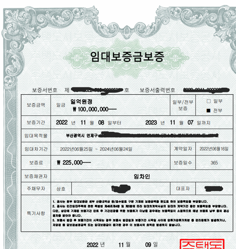 문제를 이제서야 뒤늦게 확인하고선 보증보험 증서를 발급받은지
