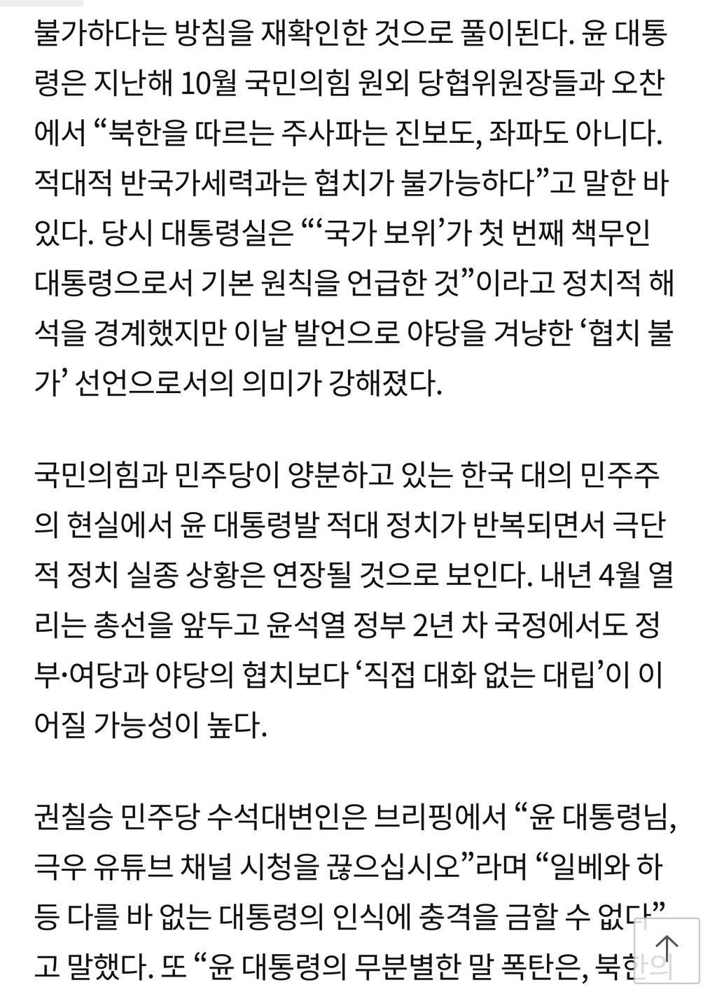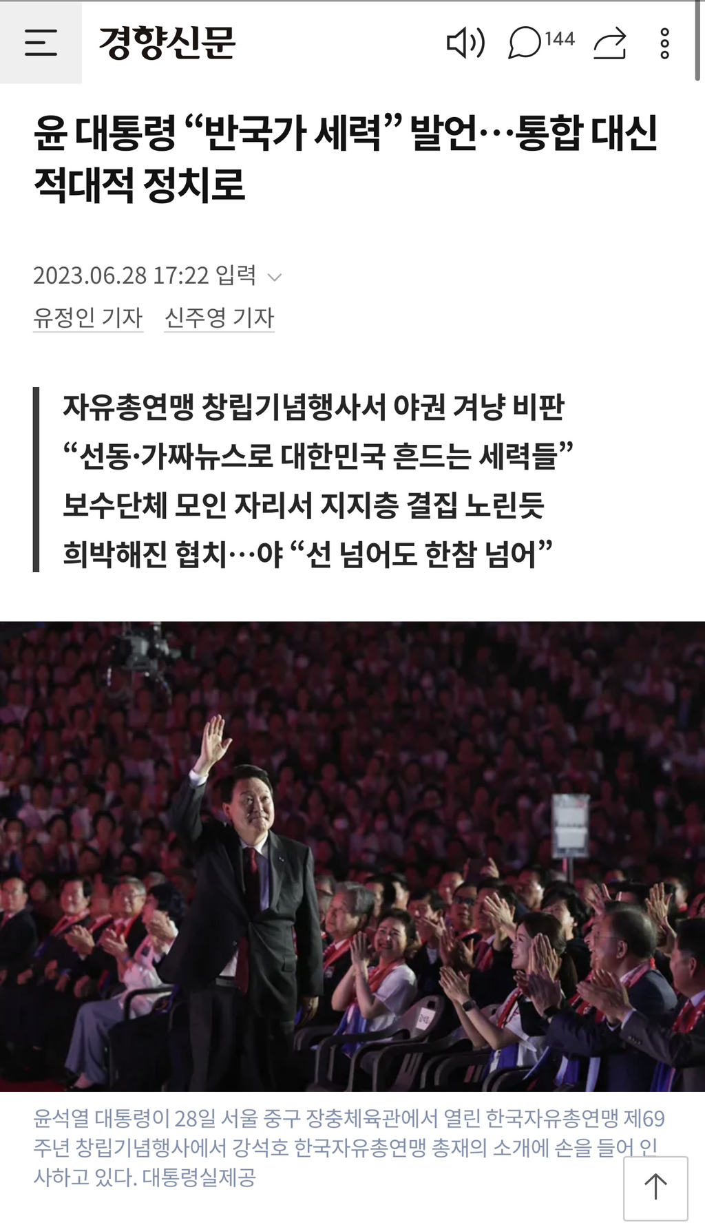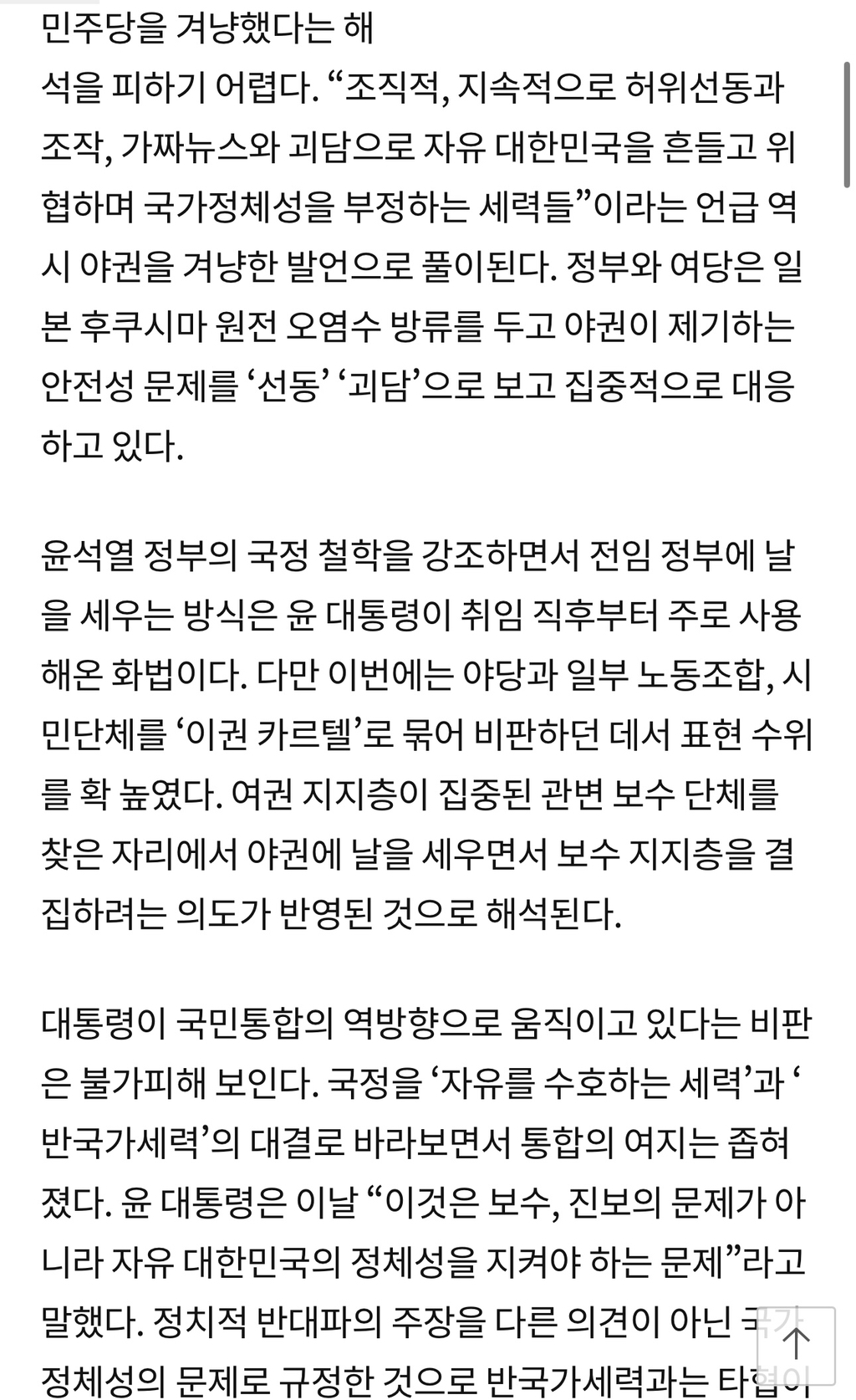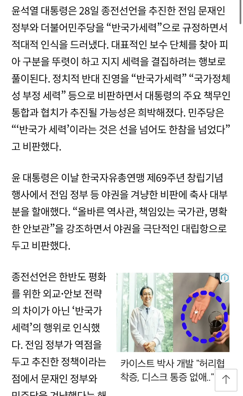 [스크랩] [여시뉴스데스크]윤석열 대통령은 28일 종전선언을 추진한 전임 문재인 정부와 더불어민주당을 “반국가세력”으로 규정 작성자바보툉이|작성시간23.09.07|조회수2,598 목록 댓글 57 글자크기 작게가 글자크기 크게가 출처 : http://news.khan.kr/bryz 다음검색 스크랩 원문 : *여성시대* 차분한 20대들의 알흠다운 공간 현재 게시글 추가 기능 열기 북마크 공유하기 신고 센터로 신고 댓글 댓글 57 댓글쓰기 답글쓰기 댓글 리스트 작성자마음까지쿨 | 작성시간 23.09.07 늦더위 쳐먹었너 작성자파란색코끼리 | 작성시간 23.09.07 나대네진짜 작성자GAMJA | 작성시간 23.09.07 왜 안죽어? 작성자KOVO | 작성시간 23.09.07 니가 반국가 ㅅㅂ 작성자다들나솔보라구 | 작성시간 23.09.07 악몽 꾸는거 같아 ㅠㅠ 댓글 전체보기
