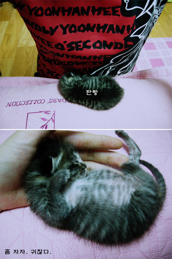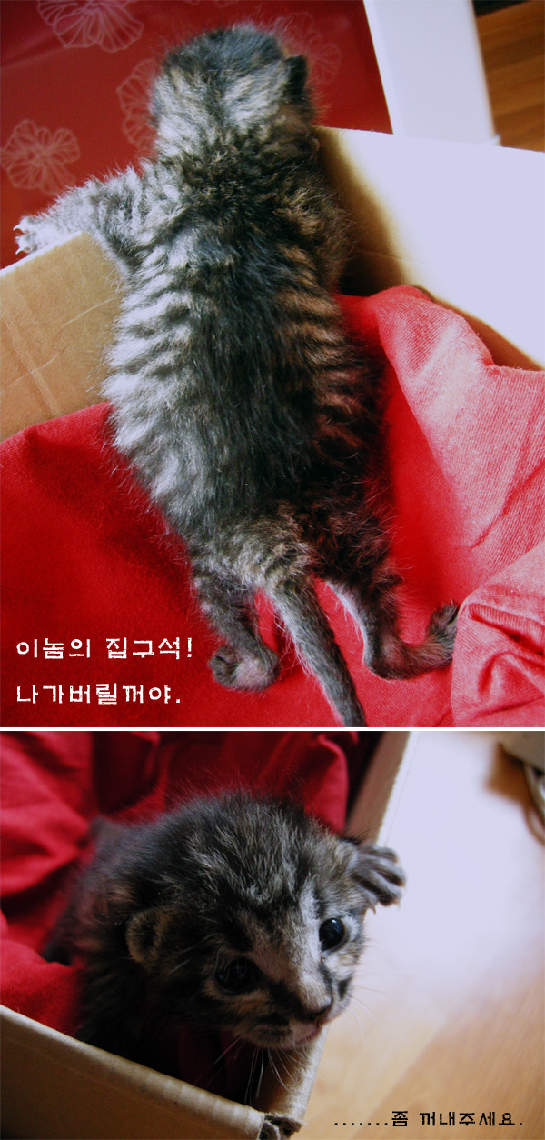 한참을 울다 지쳐버린 꼬물이는 박스안에 몸을 잔뜩 웅크려 잠이 들었고,