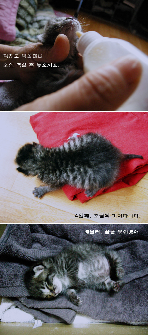 이렇게 작은 놈인줄 몰랐다며 엄마는 손수 분유를 타 먹이시고