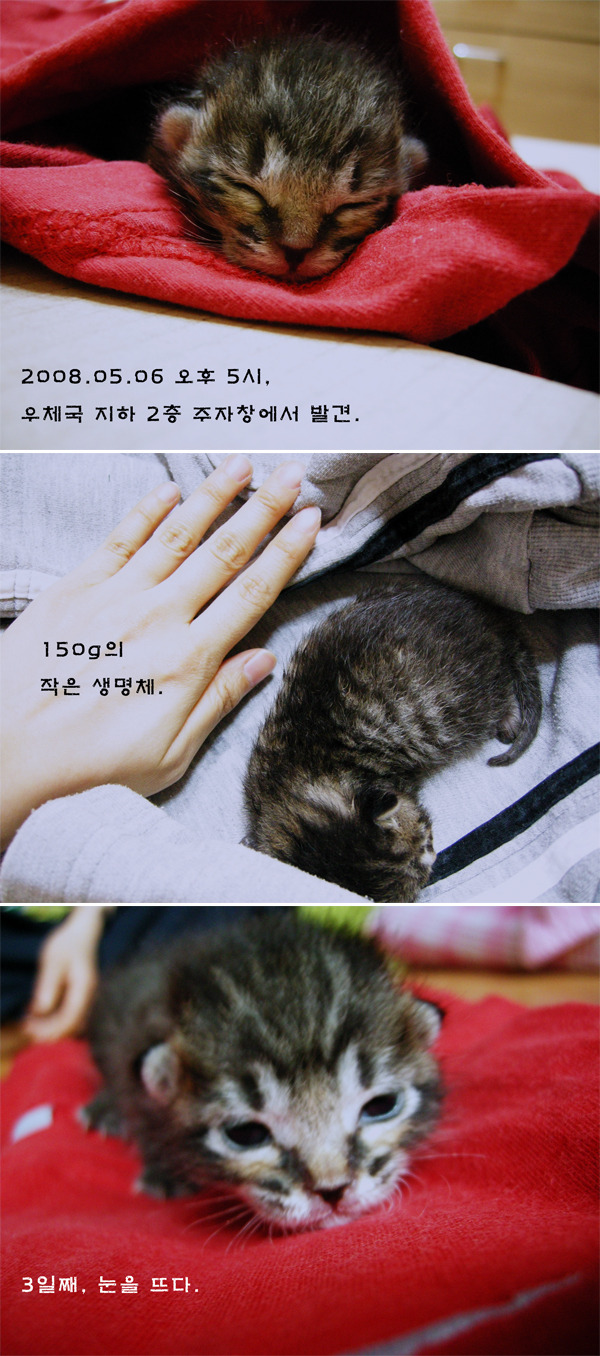 일주일도 채 안되어 보이는 어린 것이 차가운 바닥에서 마냥 울고 있으니