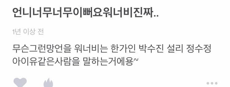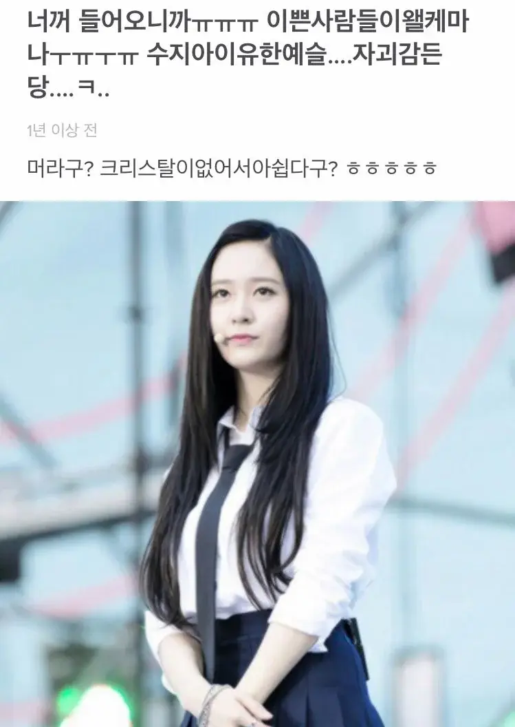 작성자고객님의안전 작성시간 23.09.13 기여워ㅠ 근데 도댜체 왜 첨에 그딴 소문이난겨ㅠㅠ카리나 개짱..