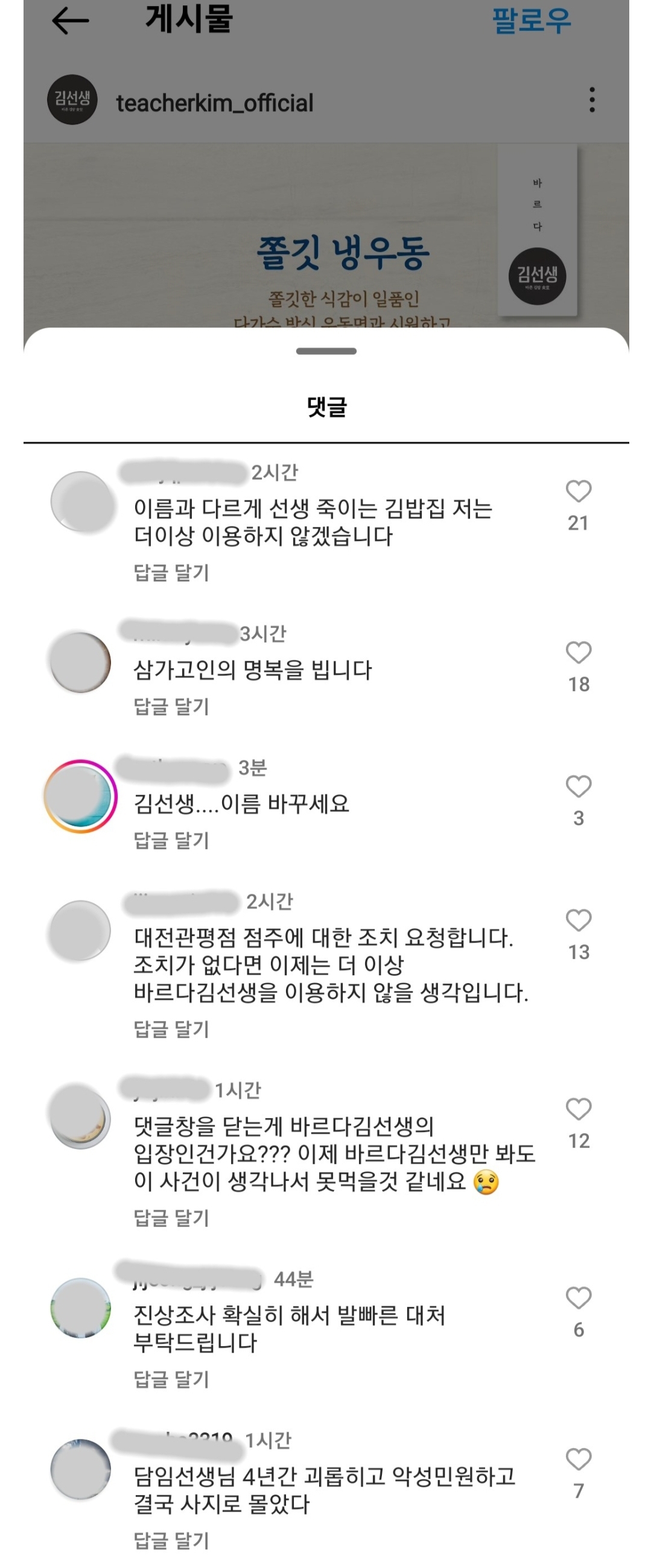 작성자로또건강최고내게로 작성시간 23.09.09 불매다 김선생에서 저기 사업장 고소하면 졸겟다