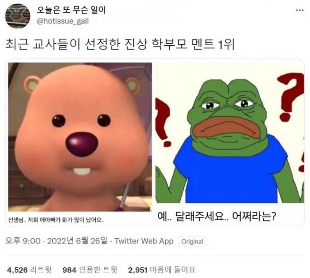 애 아빠가 화나서 학교 찾아간다는 걸 제가 말리고 있어요~ 이거 알면 애 아빠가 학교 찾아가요~ 아 뭐 어쩌라고
