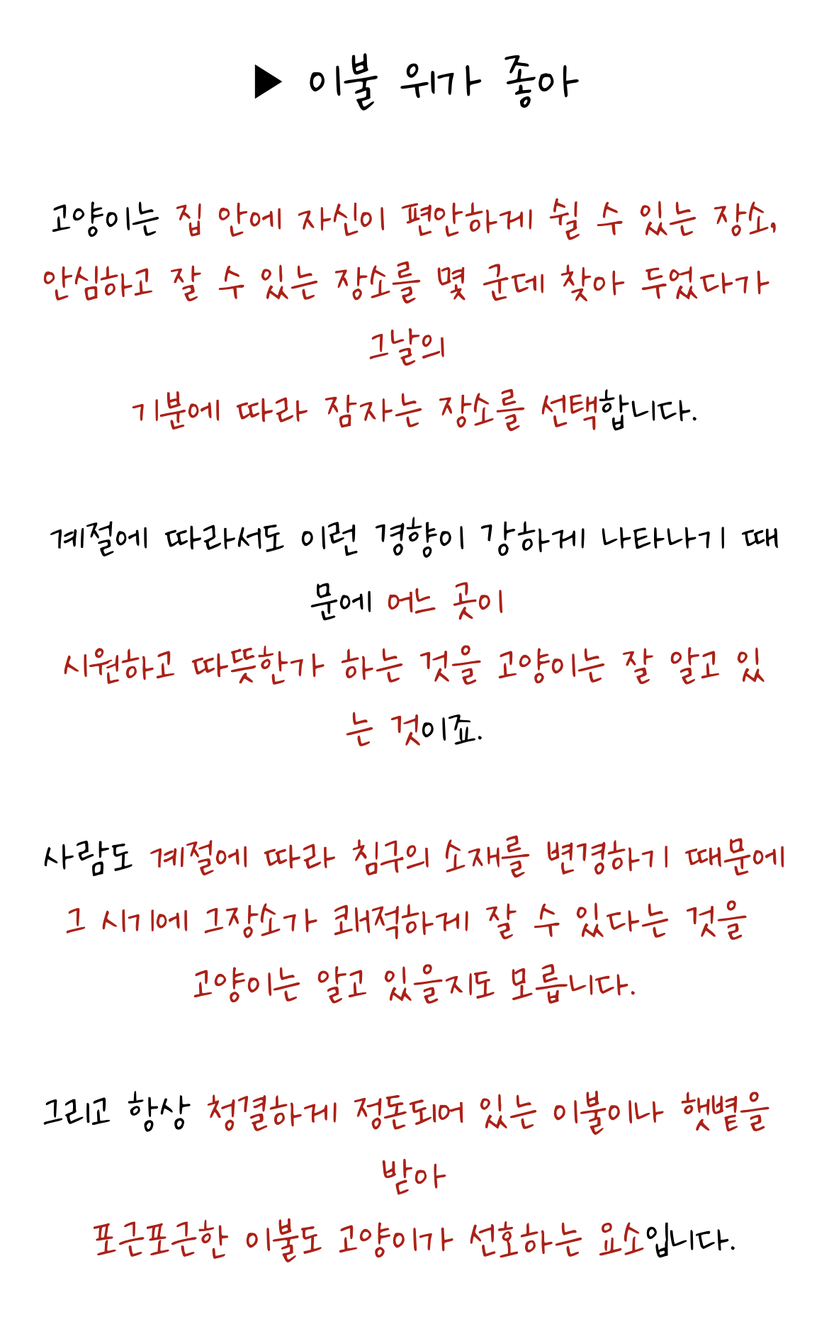 작성자꾹꾹이골절가즈아 작성시간 23.09.09 여름에는 침대 옆에 마련해둔 고앵이 침대에서 자고 겨울에능 자다가 이불 열라고 하고선 가랑이 사이로 들어와서 자