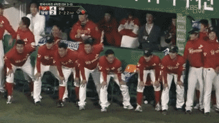 SK 선수들은 우승의 순간 뛰어나갈 준비를 하고있습니다.