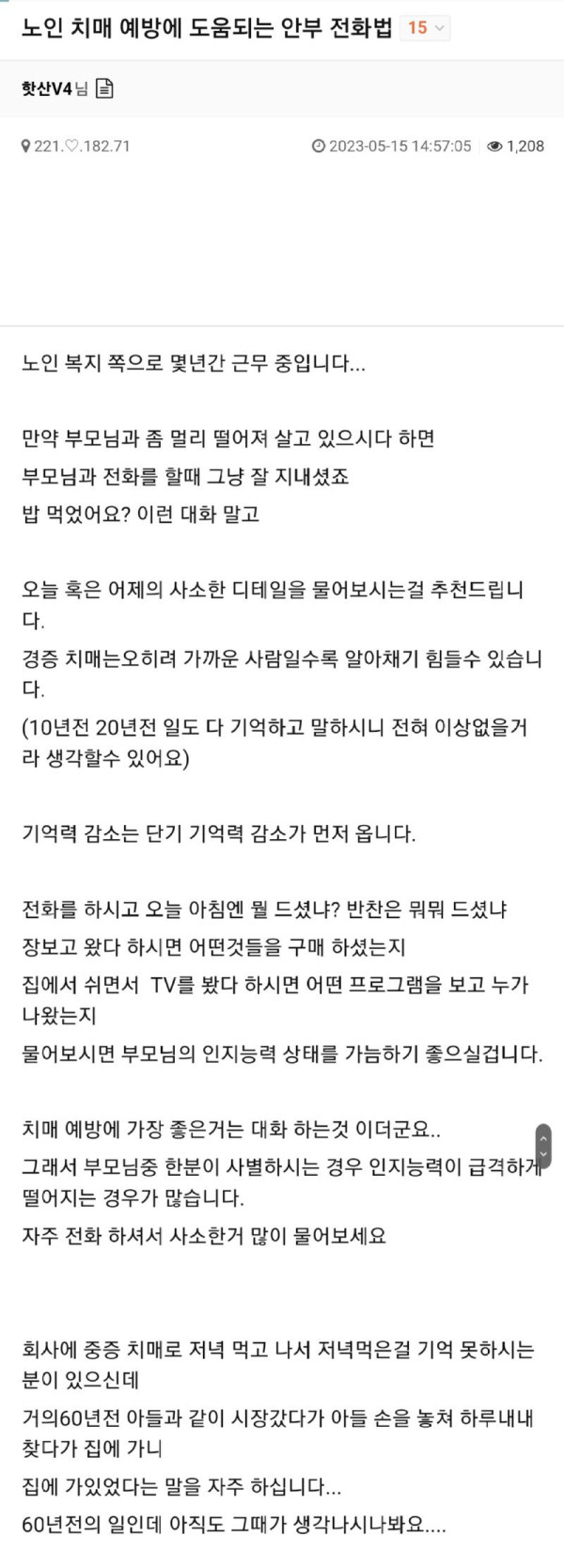 [스크랩] [흥미돋]노인 치매 예방에 도움되는 안부 전화법 작성자별은 영원히 빛나고|작성시간23.09.14|조회수2,759 목록 댓글 3 글자크기 작게가 글자크기 크게가 출처 : 여성시대 돈도없으니신경꺼야지 다음검색 스크랩 원문 : *여성시대* 차분한 20대들의 알흠다운 공간 현재 게시글 추가 기능 열기 북마크 공유하기 신고 센터로 신고 댓글 댓글 3 댓글쓰기 답글쓰기 댓글 리스트 작성자Ol명헌 | 작성시간 23.09.14 할머니랑 통화할때 참고해야지ㅠㅠㅠ 작성자망고냉장고 | 작성시간 23.09.14 참고해야겠다 ㅠㅅ 작성자갊은삼자 | 작성시간 23.09.14 엇.. 좋은 정보다 참고할게 댓글 전체보기